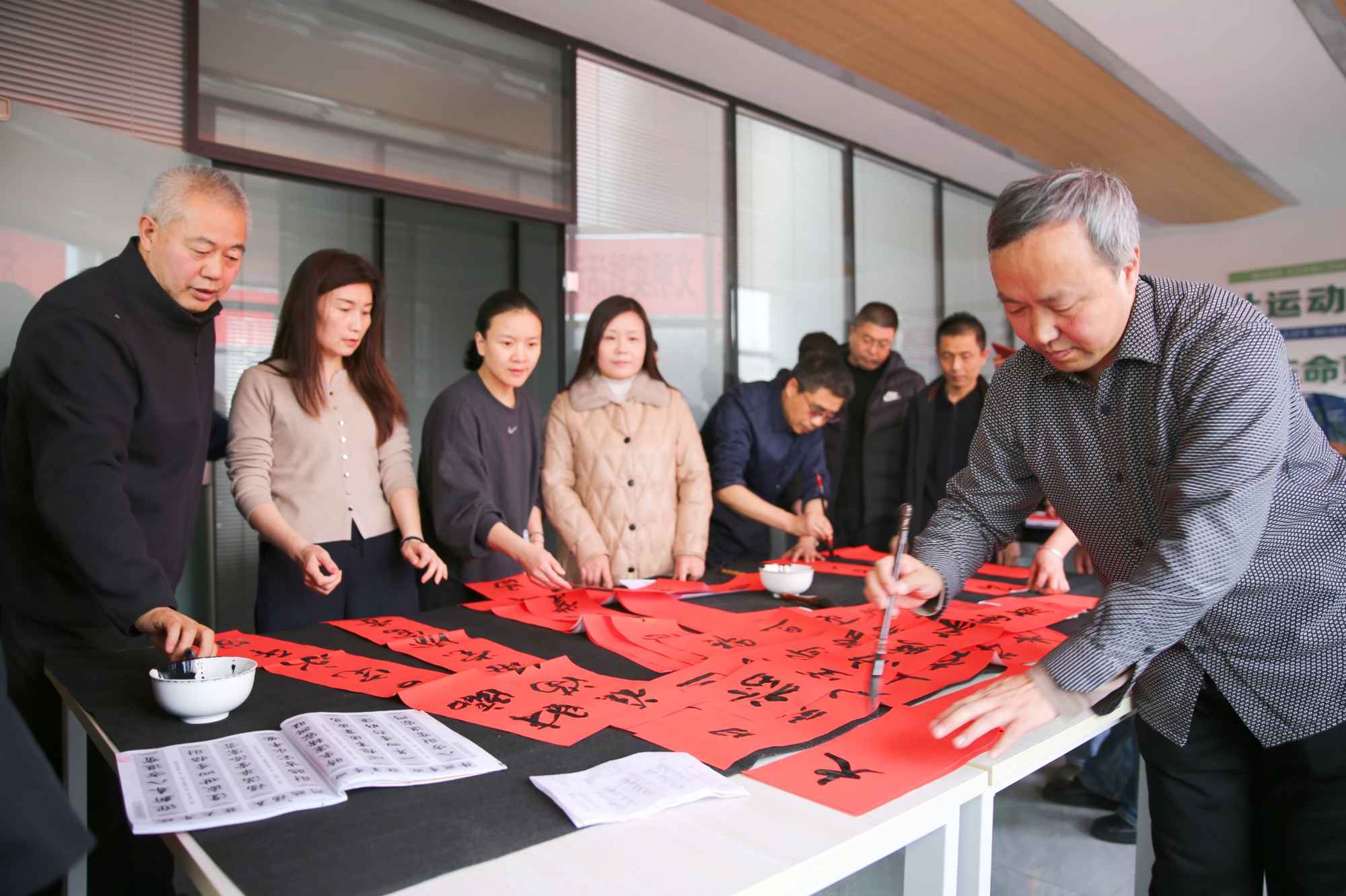 红纸翻飞承年味,笔墨飘香送福来。1月29日下午,山西省吕梁市方山县积翠社区活动中心内暖意融融,红彤彤的横幅与整齐排列的案几相映成趣,浓郁的新春氛围扑面而来。“墨香送福迎新春”送春联活动在此正式启幕,来自全县的书法爱好者现场挥毫泼墨,将新春的美好期许与厚重的文化关怀,实实在在送到了居民心坎上。