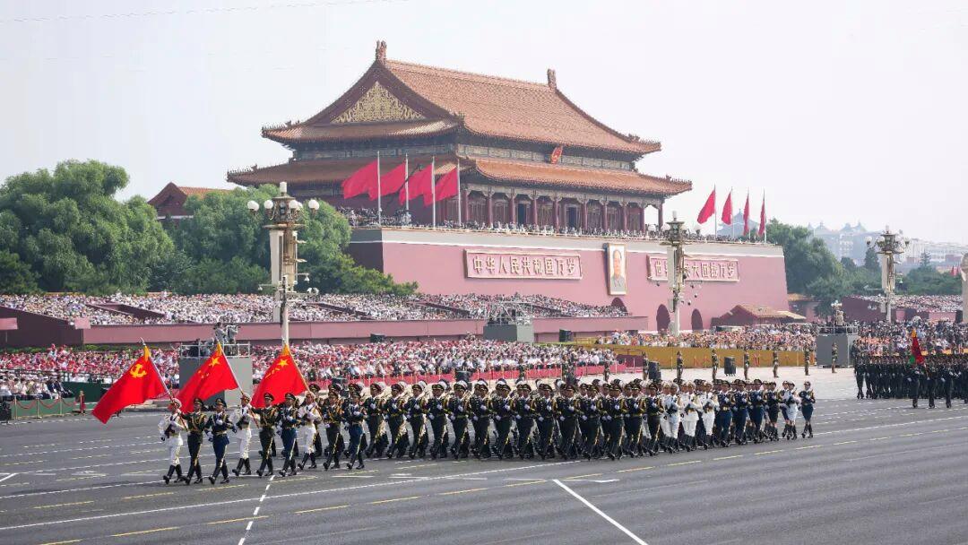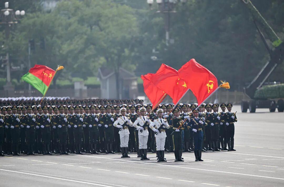 仪仗方队护卫党旗、国旗、军旗,3日上午第一个走过天安门广场,接受祖国和人民检阅。