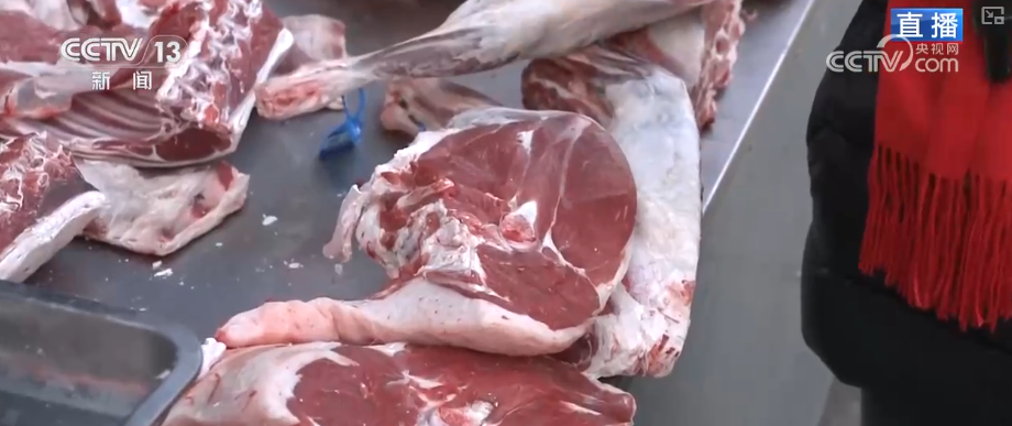 选年货,牛羊肉一定是必不可少的,宁夏的羊肉在全国也是极为出名的。摊主介绍了挑羊肉的小秘诀,第一看颜色和纹路,肉呈现鲜亮的淡粉色,带一点白膘,肉纹较细,也分布均匀,说明肉质嫩。第二要上手摸,表面干爽、不黏手,按下去有弹性的肉,才是好肉。