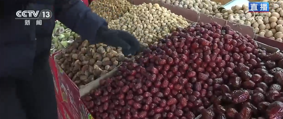 商家介绍,每年干果热卖时间从春节前一个多月就开始了,它就像一个时间标尺,意味着年货大集进入热销期。因为干果耐存放,方便运输。春节前,很多人都会提前选择购买新疆的干果,用来招待亲朋好友或送给大家做节礼。