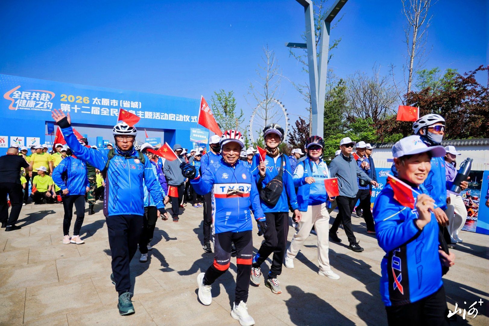同时,启动仪式上向太原市人民发出倡议:树立“健康第一,终身锻炼”的理念,人人参与健身活动,人人享受健康生活,让自觉锻炼、主动健身、追求健康成为全民共识与时代风尚。倡导科学健身,选择适合自身体质与兴趣爱好的运动项目,做到适时适度、持之以恒,坚持日常锻炼,强健自身体魄。全民共赴健康之约,大家一起行动起来,从我做起,从身边做起,从现在做起,在运动中收获健康,在健康中享受快乐,在快乐中体验人生。