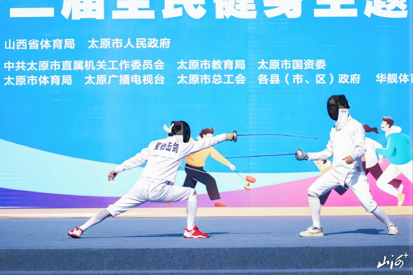 山西晚报·山河+讯 太极拳如行云流水般柔中带刚,动静相宜间尽显阴阳相济之妙;舞动在剑尖上的优雅博弈,击剑展现了速度、智慧与技巧在方寸剑道间的激情碰撞……四月并州,万物复苏、生机盎然,4月18日,2026太原市(省城)第十二届全民健身主题活动在晋阳湖公园启动。