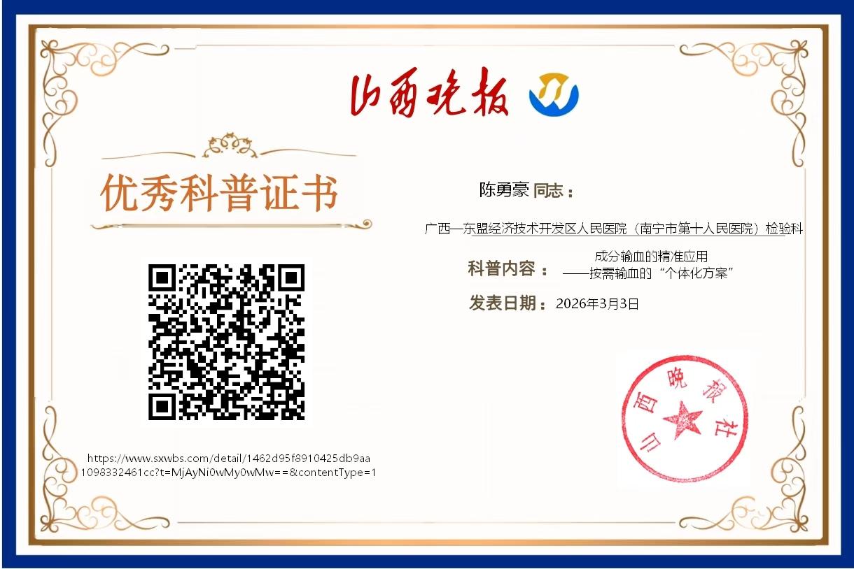 作者:广西—东盟经济技术开发区人民医院(南宁市第十人民医院)检验科 陈勇豪