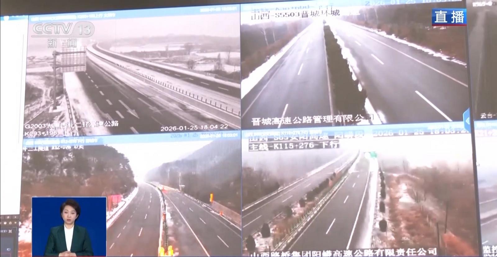总台央视记者 陈俏:我们在交通运输部了解到的最新消息,从1月25日早上7时到17时,因降雪及路面结冰,河北、山西、内蒙古等7省(区)的国省干线,共有59个路段采取主动封闭管控措施。