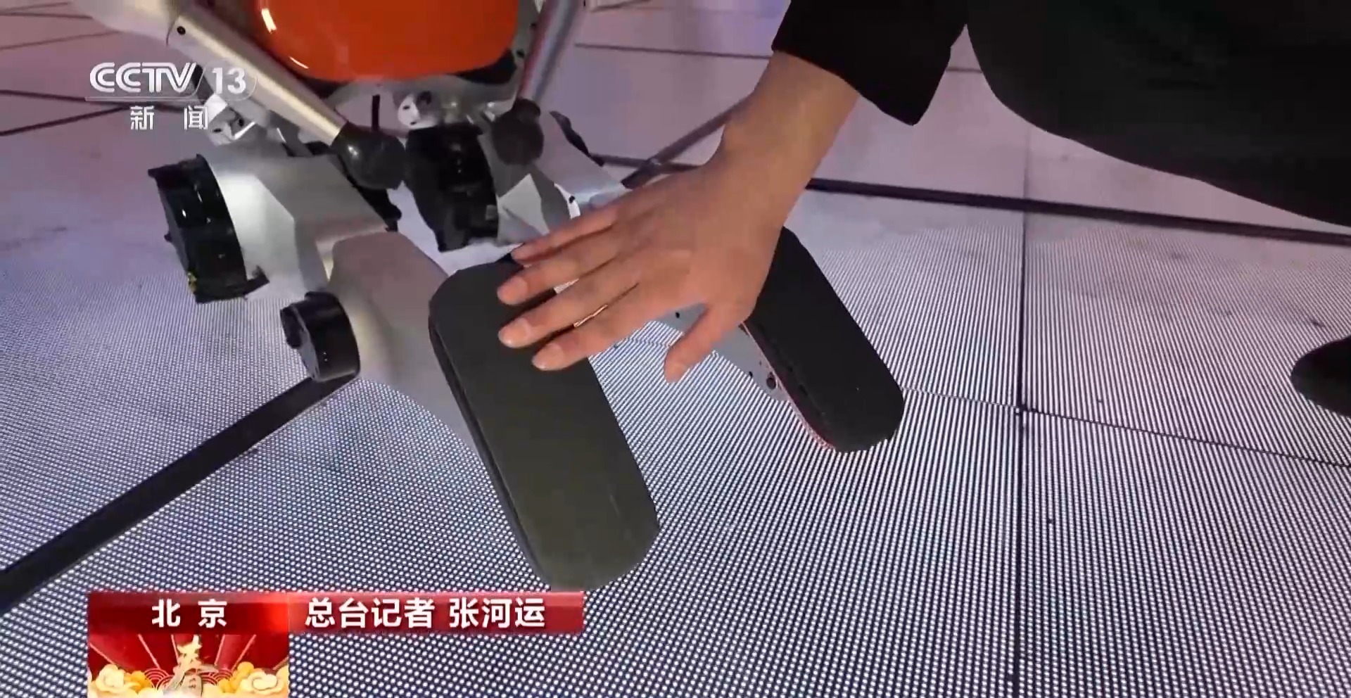 在总台春晚一号演播大厅的舞台,可以近距离看到舞台地面都是钢化玻璃,摩擦系数非常有限,即便在人形机器人足部加装了防滑垫,但对它们来说,完成跑、跳、空翻等高难度动作仍旧是极大挑战。尽管如此,为了保障节目效果,松延动力团队仍旧放弃了铺设地毯的方案,而是从加强机器人的自身稳定性上寻求突破。