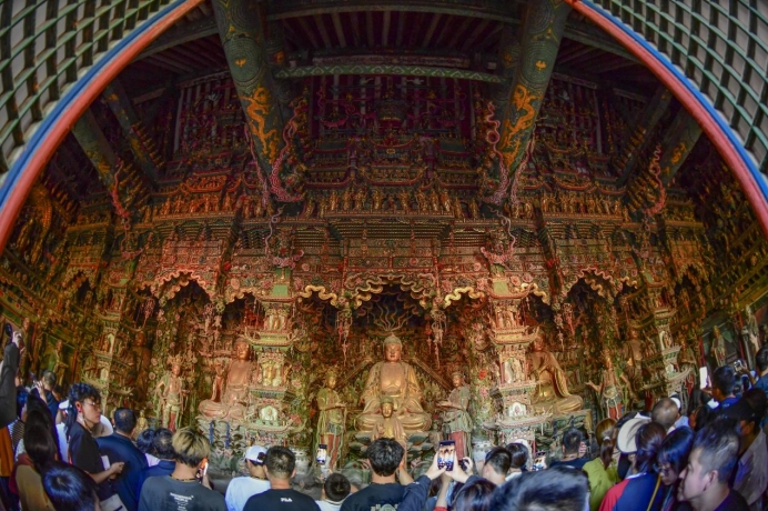 隰县小西天景区人潮涌动。(资料图)新华网发(李虎威摄)