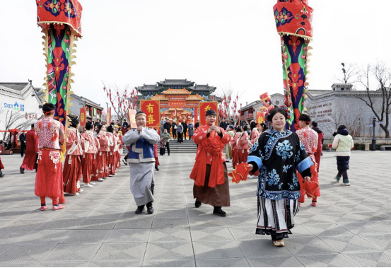 晋中表现尤为亮眼,全市累计接待游客520.53万人次,同比增长61.43%。平遥古城以“骏马迎春 福满新程”为主题,推出18项特色活动;乔家大院的“春囍中国年”里,锣鼓贺岁与婚俗演绎让晋商年俗可感可知;榆次老城则通过“日间民俗互动”全域沉浸式体验,还原市井烟火气。山西乔家大院旅游股份有限公司负责人表示:“今年春节,我们精心策划了四大核心活动,涵盖民俗、非遗、演艺、体验等多个方面,创新推出直升机、滑翔伞、热气球的低空游览项目,让游客俯瞰乔家,读懂晋商百年‘囍’愿。希望通过一系列活动,让游客深度体验非遗魅力、感受传统年味、了解晋商文化。”