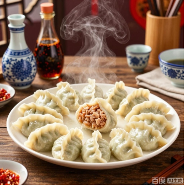 除夕,年味抵达顶峰。一大早,父亲便开始贴春联,都是亲手用毛笔写的,字虽算不上隽秀,却满是喜庆。我和妹妹围在父亲身边,递面糊、扶春联,看着“福”字倒贴在门上,听父亲笑着说“福到了”,欢喜便漾满心头。母亲则在厨房里忙个不停,剁肉馅、和面,叮叮咣咣的声响,交织成最动听的年味序曲。那时物资虽不算丰裕,年夜饭却格外丰盛:一碗红烧肉浓油赤酱,一盘糖醋丸子金黄酥脆,几碟凉拌菜清爽解腻,一条鲜鱼寓意“年年有余”,还有一大盘热气腾腾的饺子,裹着团圆的期盼。全家人围坐桌前,笑语欢声飘出窗外,盖过了远处零星的鞭炮声。