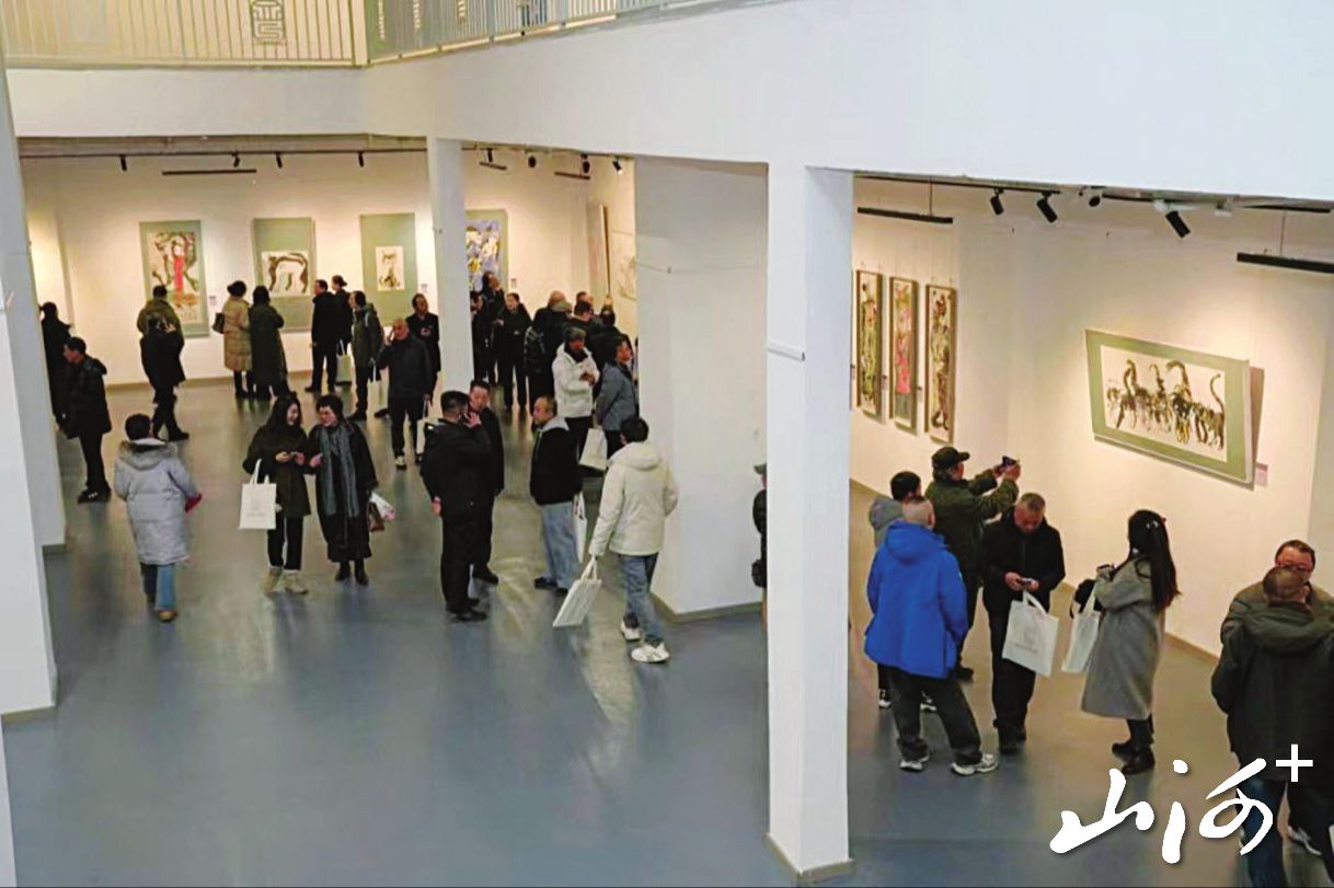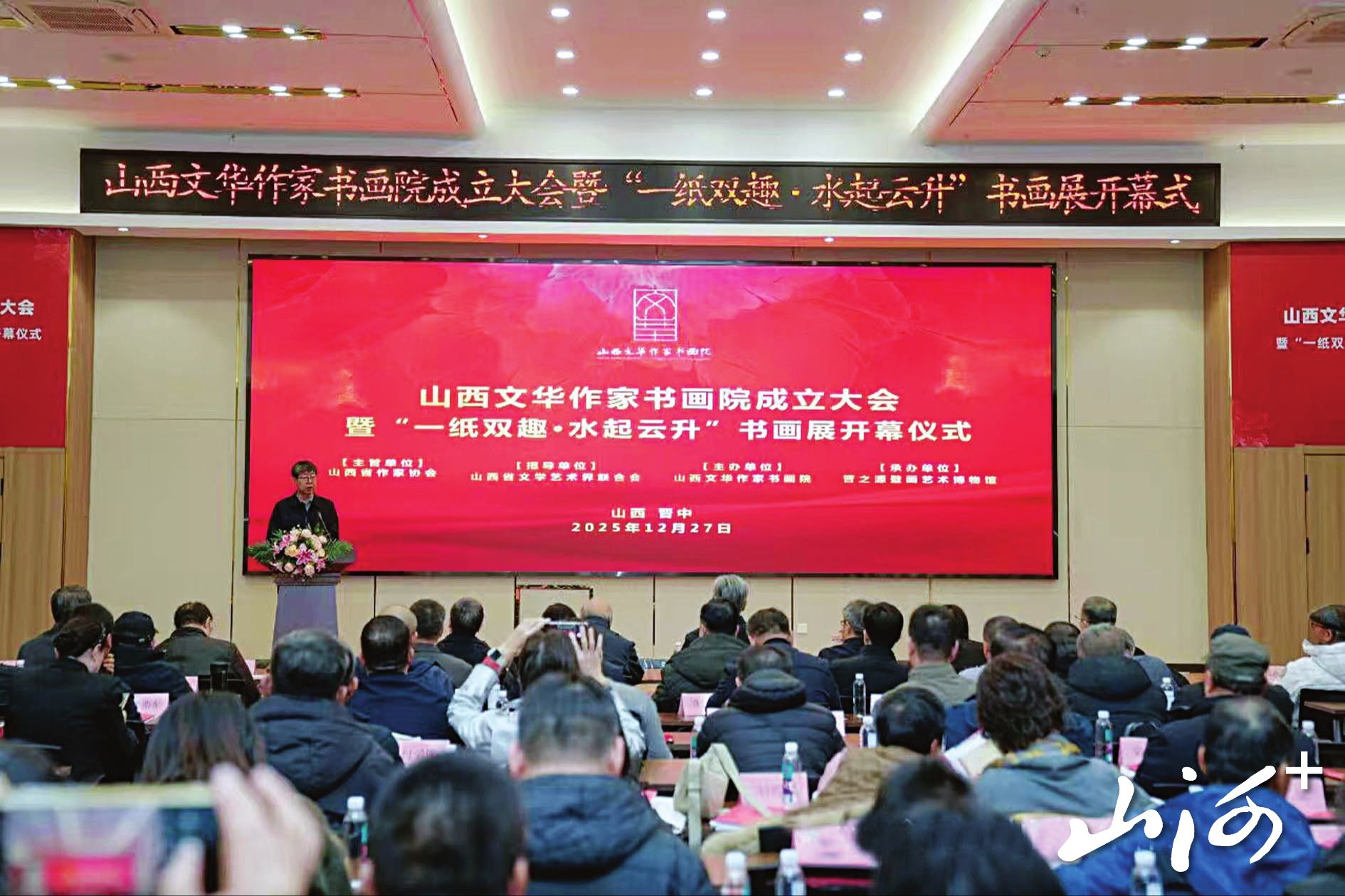 山西文华作家书画院成立大会暨“一纸双趣·水起云升”书画展开幕式现场。