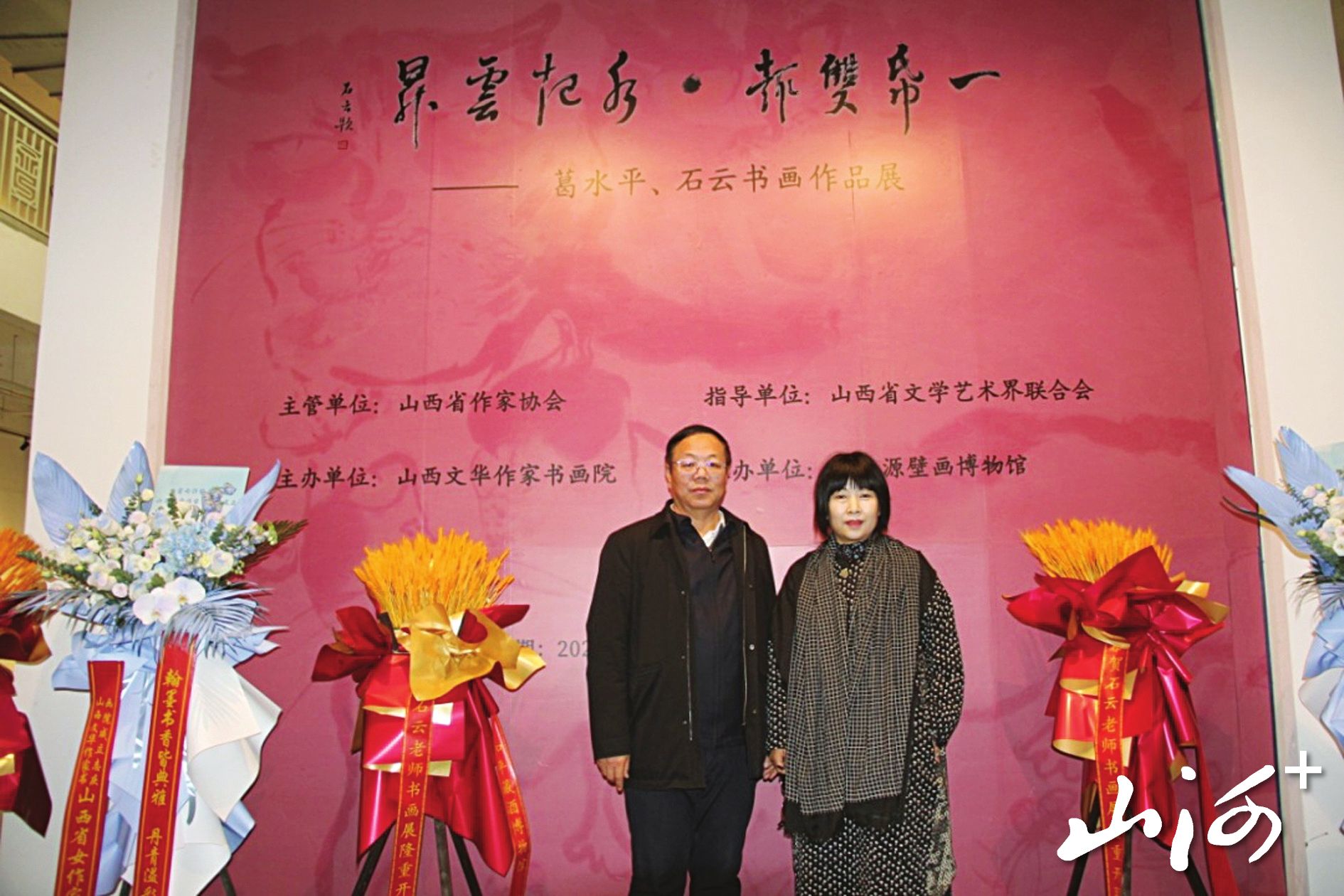 山西晚报·山河+讯 作家诗人云集论艺,文人墨客相会启新。12月27日,山西文华作家书画院在晋之源壁画艺术博物馆举行成立大会暨“一纸双趣·水起云升”葛水平、石云书画展开幕式。省委社工部部长张韬、省作协党组书记邢利民、省文联主席葛水平以及省城各界文化名流近200人参加了成立揭牌仪式。
