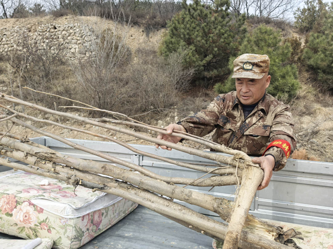 “以前骑车进山,路上就得半个多小时,前两年买了这辆旧单排车,能开进林区缓坡,清运树枝方便多了。”张美德一边驾车一边说。