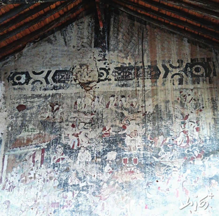 据普查队队员、文物保护员付帅介绍,上世纪60年代,为了保护龙王庙精美的壁画,村民自发组织,用家家户户刷墙的白土,将龙王庙壁画进行了保护性覆盖,才使得这些壁画免遭被破坏的厄运。