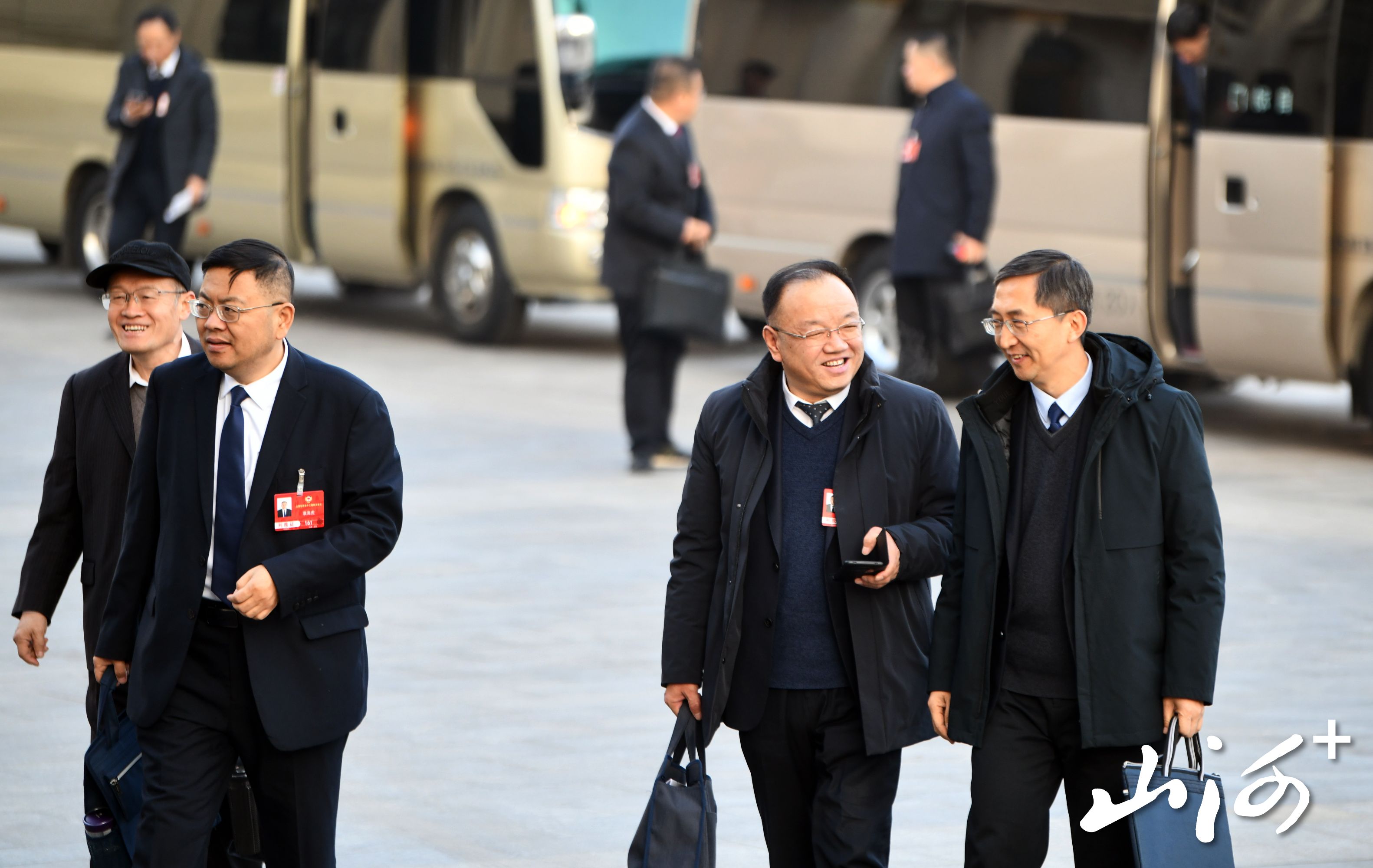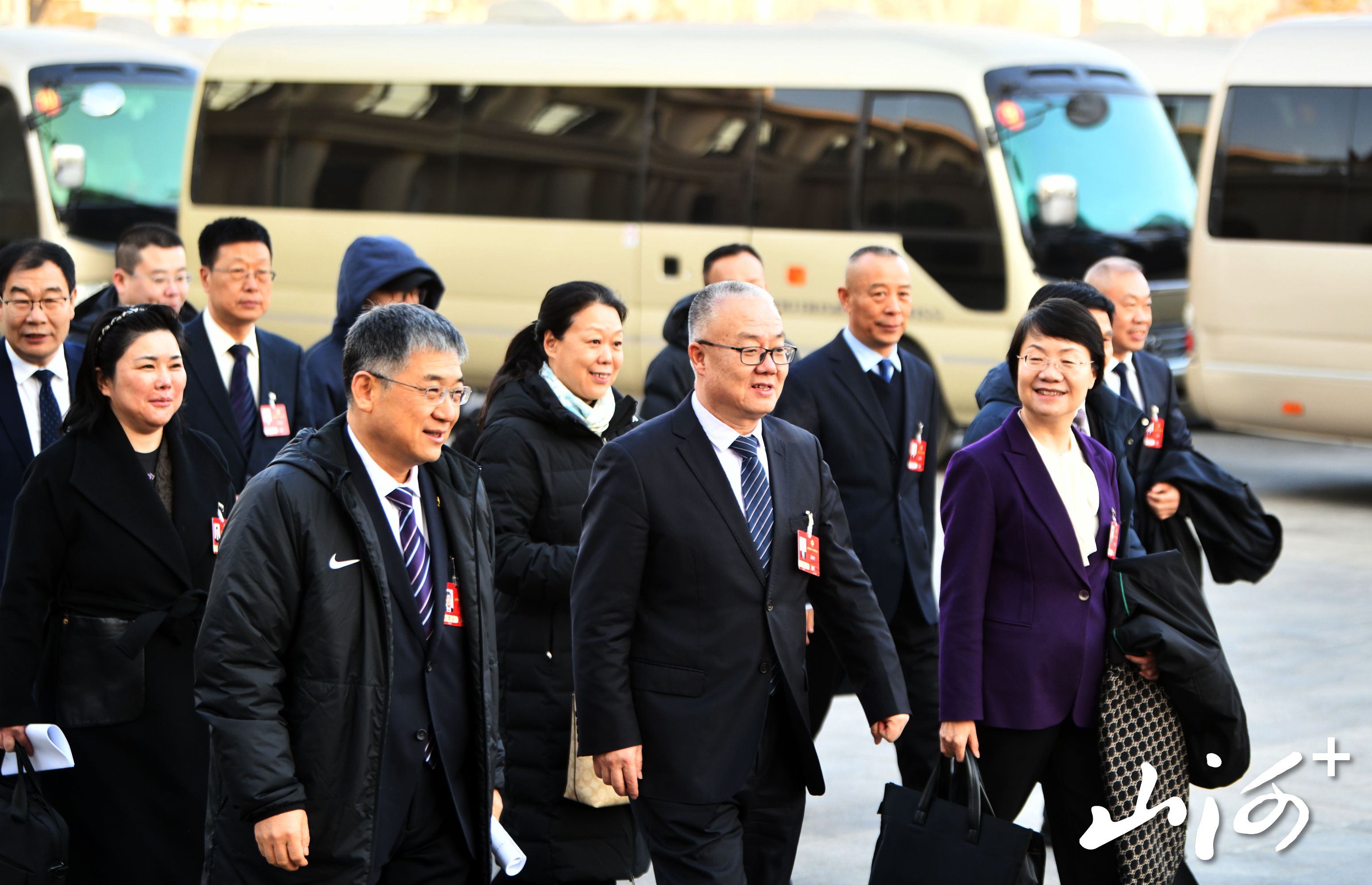 山西省政协十三届四次会议开幕,政协委员步入会场。