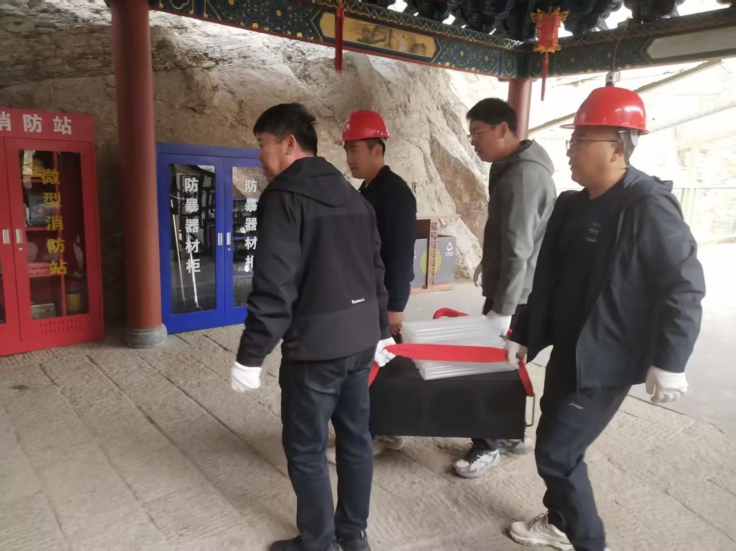 工作人员将分布式光纤地震仪主机搬运至机房调试。