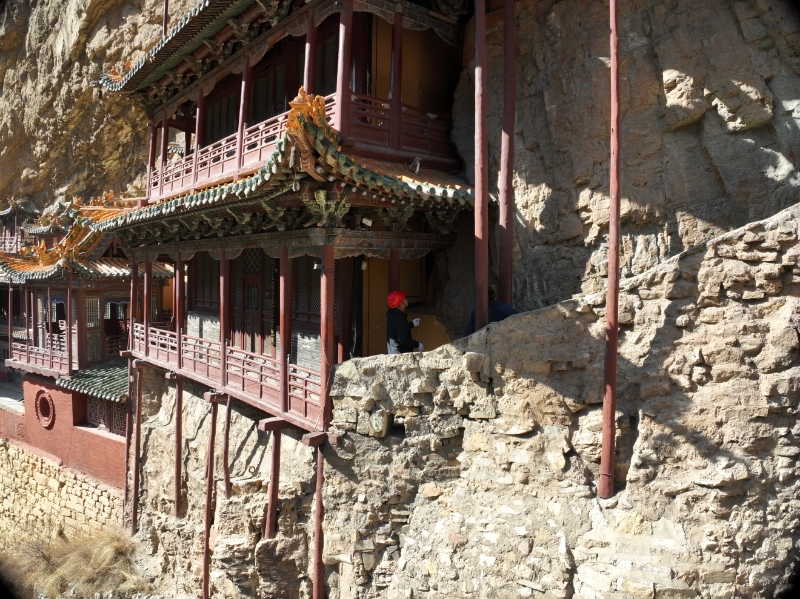 始建于北魏太和十五年(公元491年)的山西悬空寺,坐落于大同浑源恒山金龙峡翠屏峰峭壁间,历经1500多年风雨,是我国珍贵的历史文化遗产,1982年入选全国重点文物保护单位。这座古寺巧借力学原理,以半插飞梁为基、岩石暗托为辅,梁柱一体、廊栏相连,凌空而建,有着“悬空寺,半天高,三根马尾空中吊”的美誉,是当之无愧的建筑艺术瑰宝。