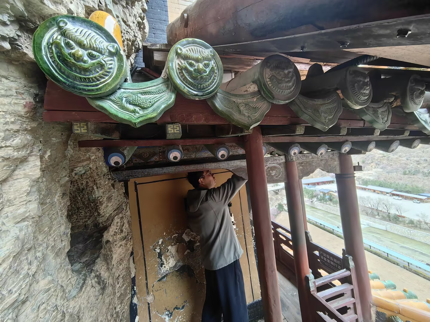“悬空寺历经千年风雨洗礼和岁月侵蚀,如今正面临着诸多严峻挑战。”曾金艳,山西省地震局震灾风险防治中心正高级工程师。她说,这座千年古建如今正面临三大严峻安全风险。一是人类活动影响。旅游旺季人流激增、工业施工带来的环境振动,给寺庙结构稳定性埋下潜在隐患;二是自然侵蚀威胁。山体风化、雨水冲刷易引发落石,寺庙木结构也因长期受力、风力作用出现材料劣化、结构变形;三是地震灾害风险,悬空寺地处大同盆地,具备发生地震的构造背景,历史上曾发生的多次强震都对其造成不同程度损伤。