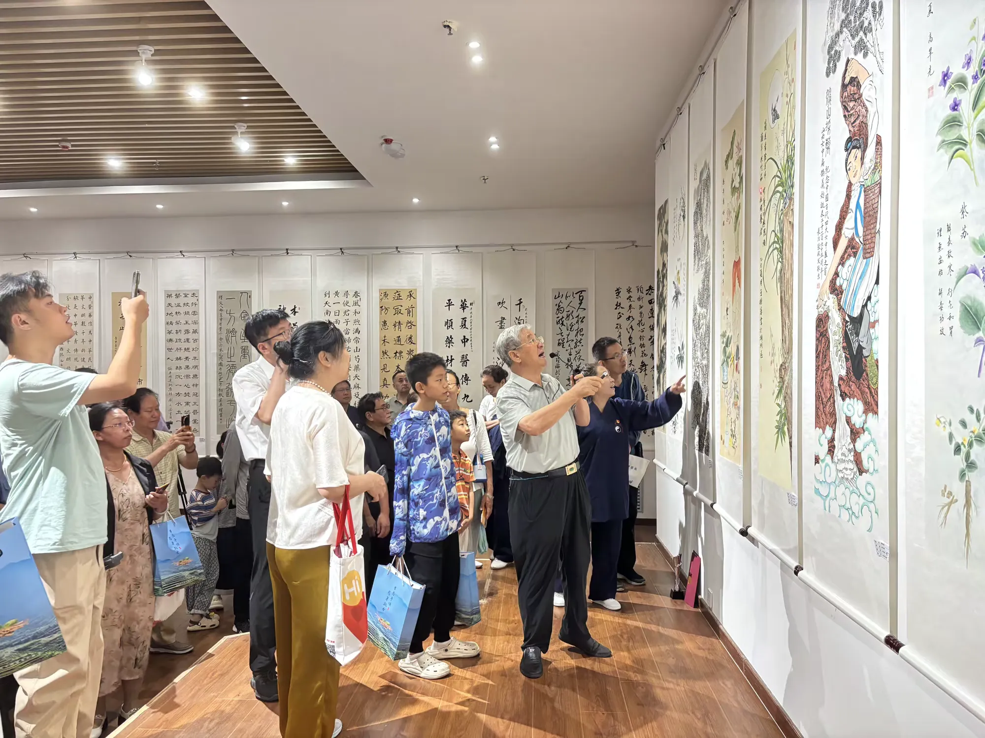 书画展区内,墨韵流转,一幅幅以中药材为创作主题的书画作品吸引着人们驻足观赏。“我画的是山里人采药的故事,”荣获书画展二等奖的青羊小学教师闫丽平指着自己的作品说:“平顺的山川孕育了丰富药材,我们要用笔墨把这份底蕴传出去。”