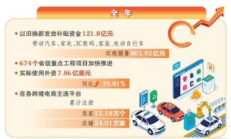 省商务厅厅长王宏晋介绍说:“我们出台促消费政策,培育新型消费,推进商旅文体健融合发展,消费对经济增长的基础性作用持续增强。”数据显示,2024年—2025年,全省消费品以旧换新共拉动消费增长1107.3亿元,参与人次超过1100万。2025年1—11月,全省社会消费品零售总额增长5.4%,高于全国平均水平1.4个百分点。
