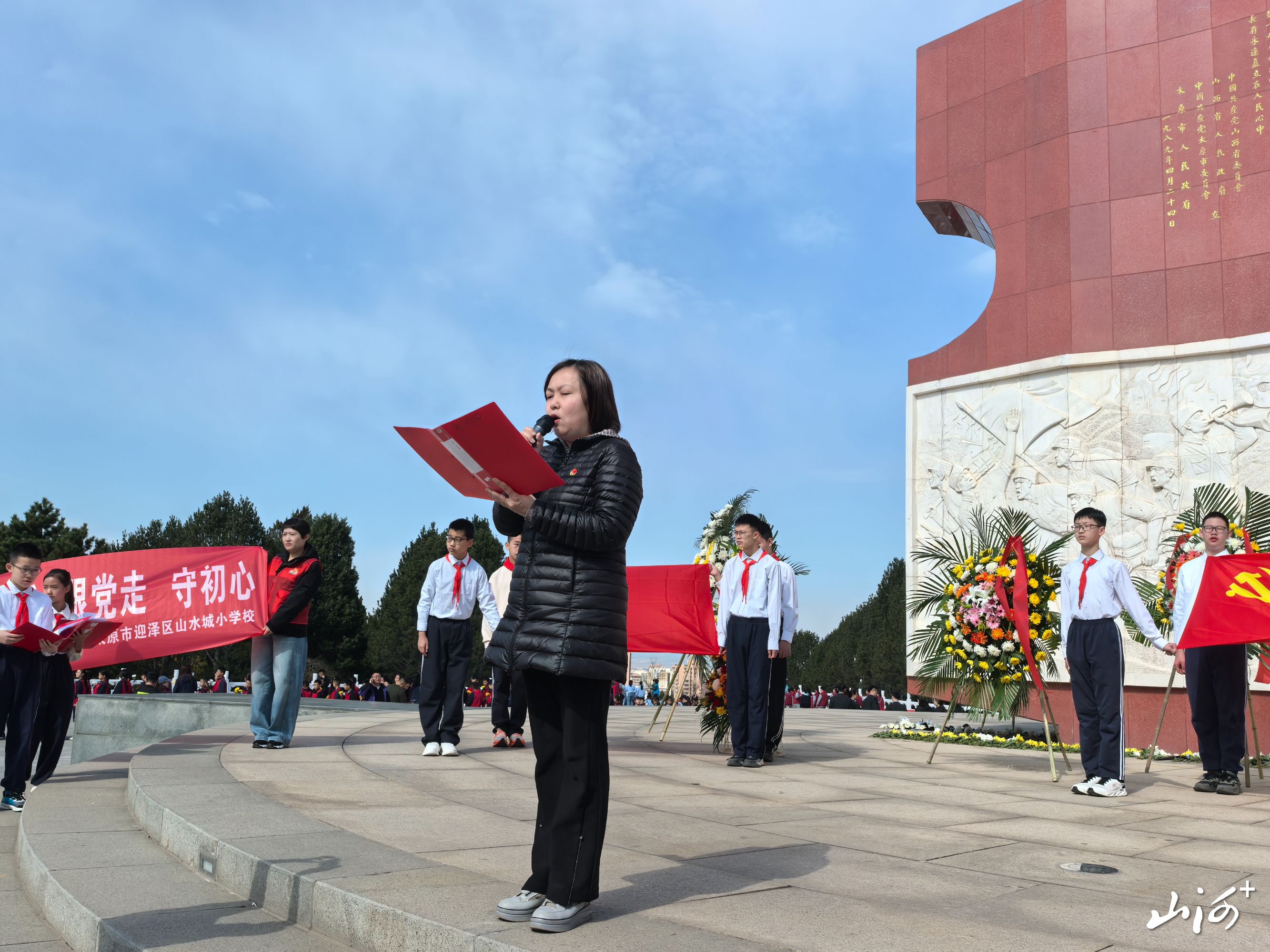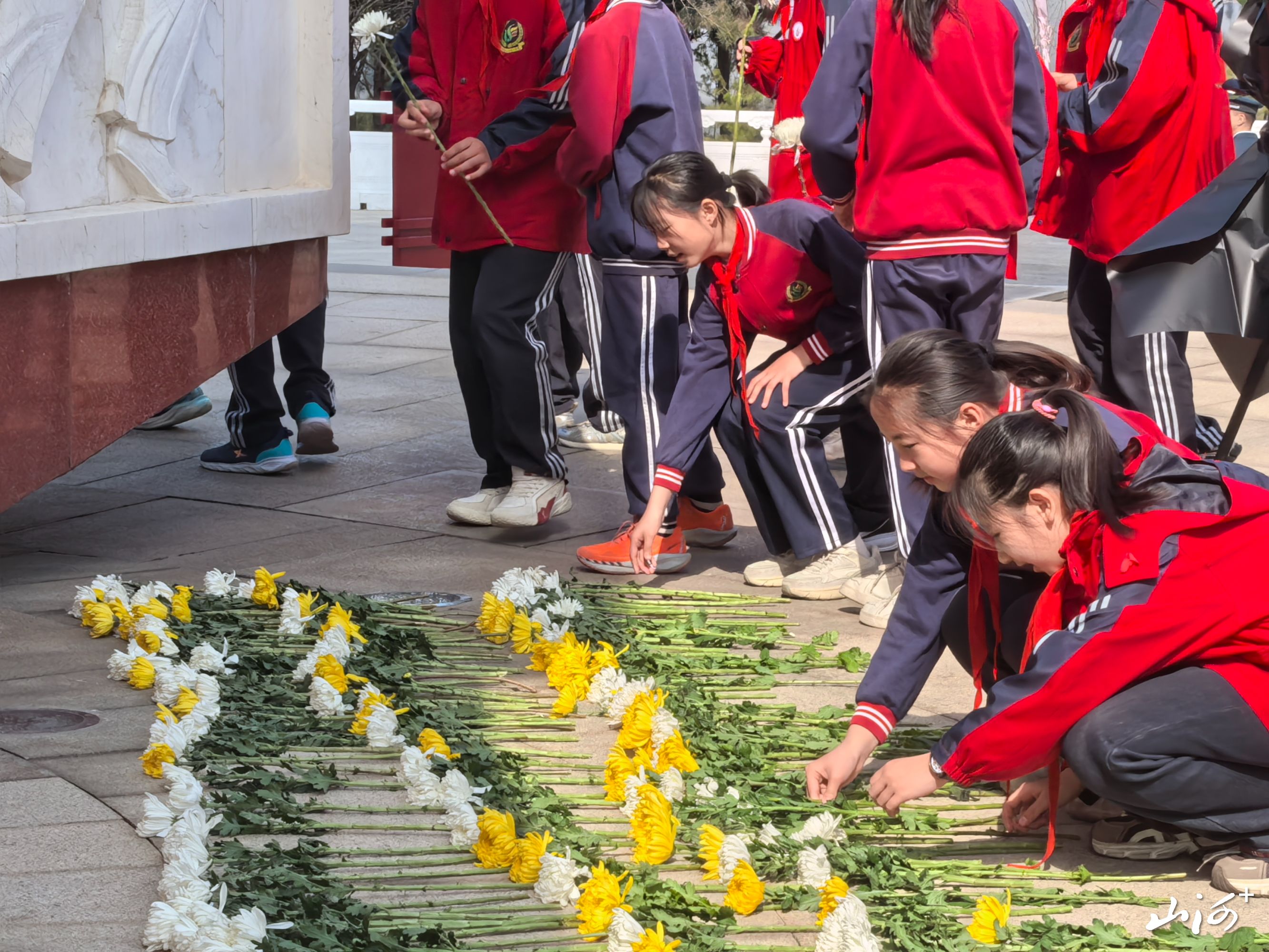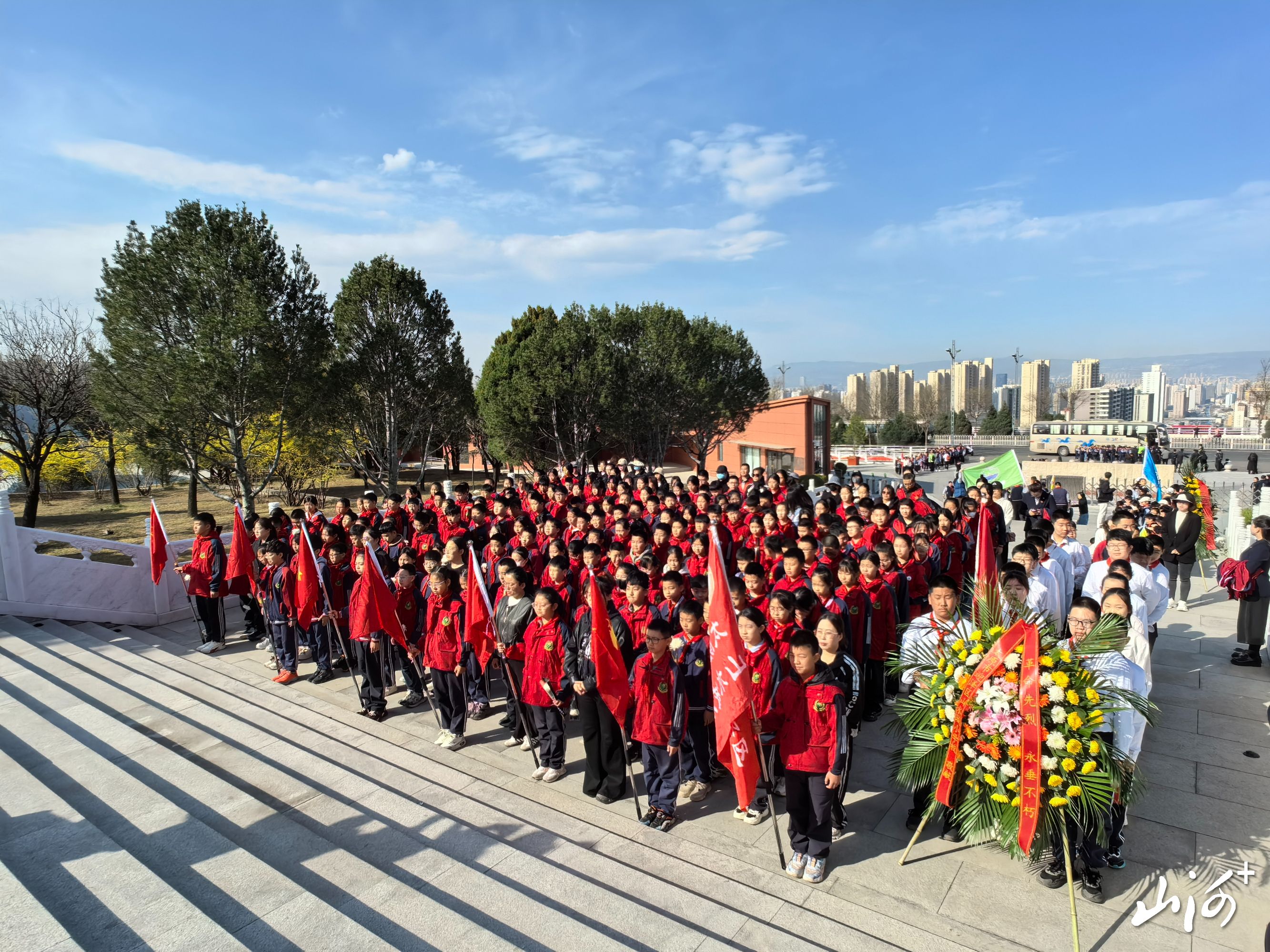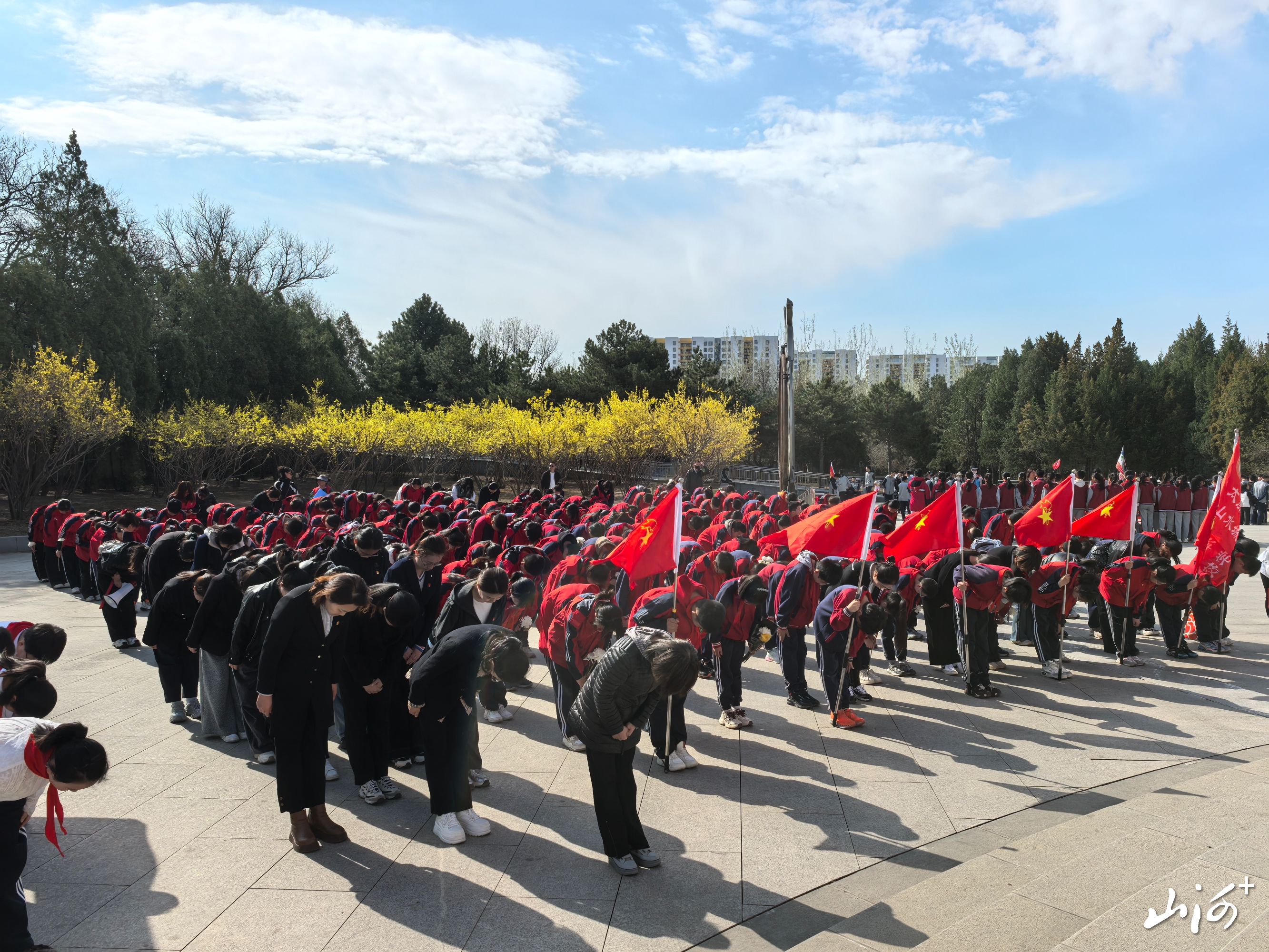 山西晚报·山河+讯 清明节之际,太原市迎泽区山水城小学组织全体党员、团员教师、六年级少先队员,携手家长代表及山水城社区志愿者,走进太原市牛驼寨烈士陵园,开展“寻访春天的记忆 致敬不朽的丰碑”清明祭扫活动。