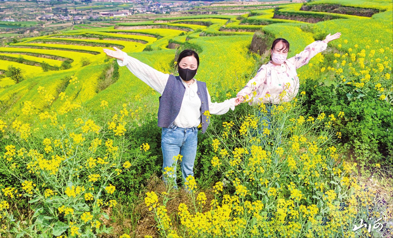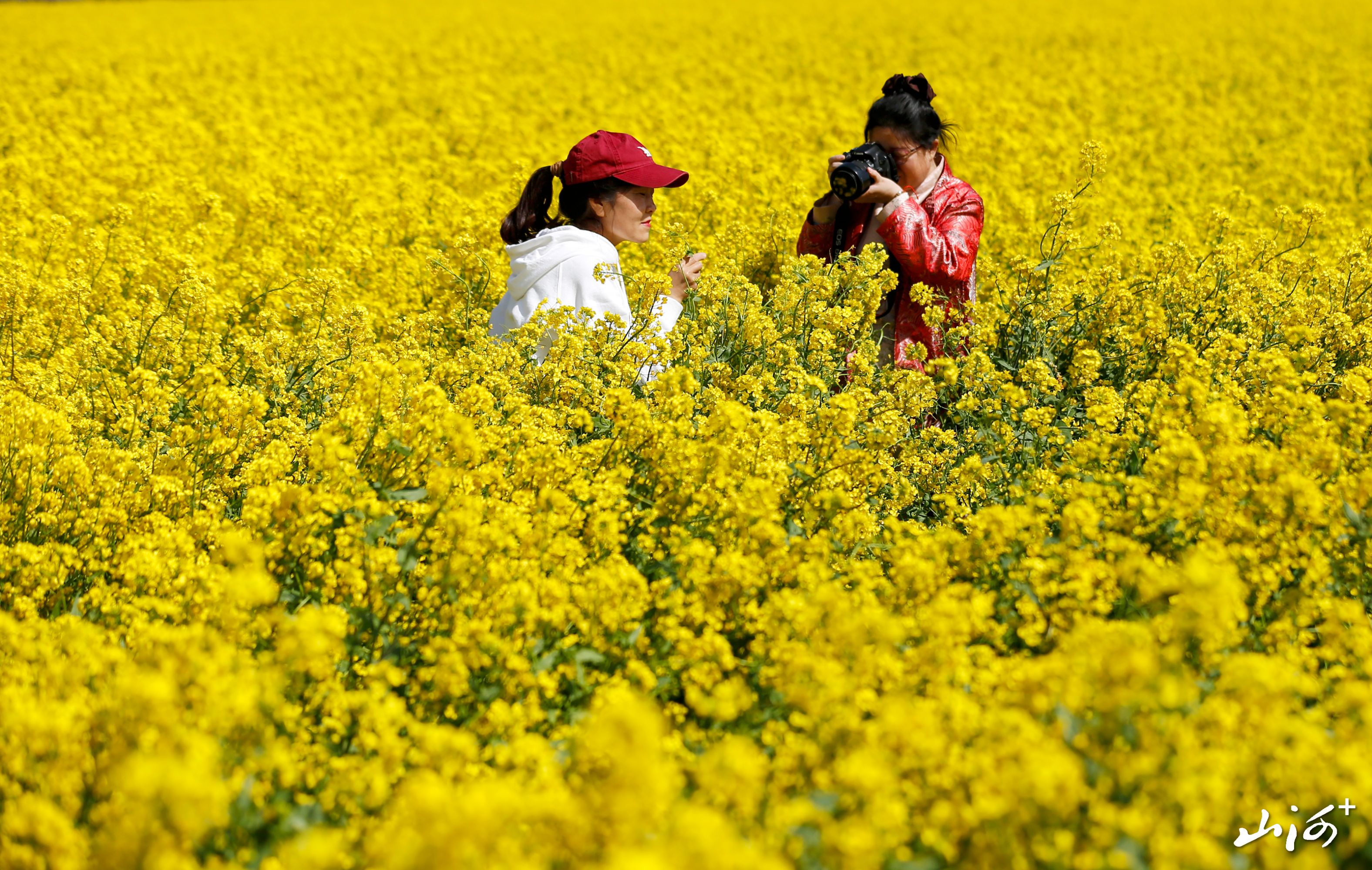 闻喜县郭家庄镇东坪村油菜花海,吸引着不少市民打卡旅游,乐享田园春光之美。