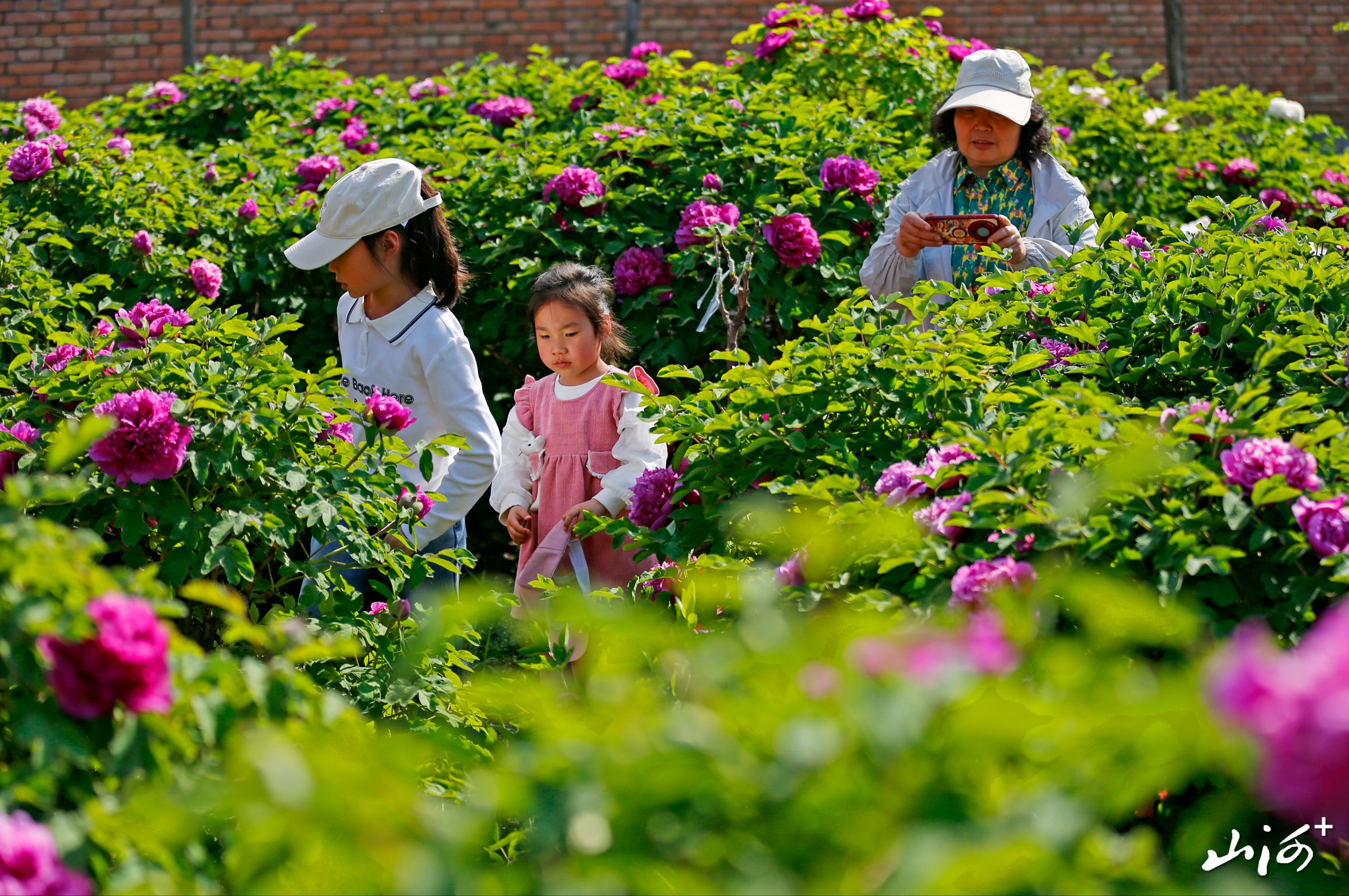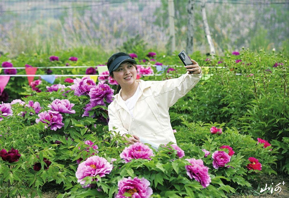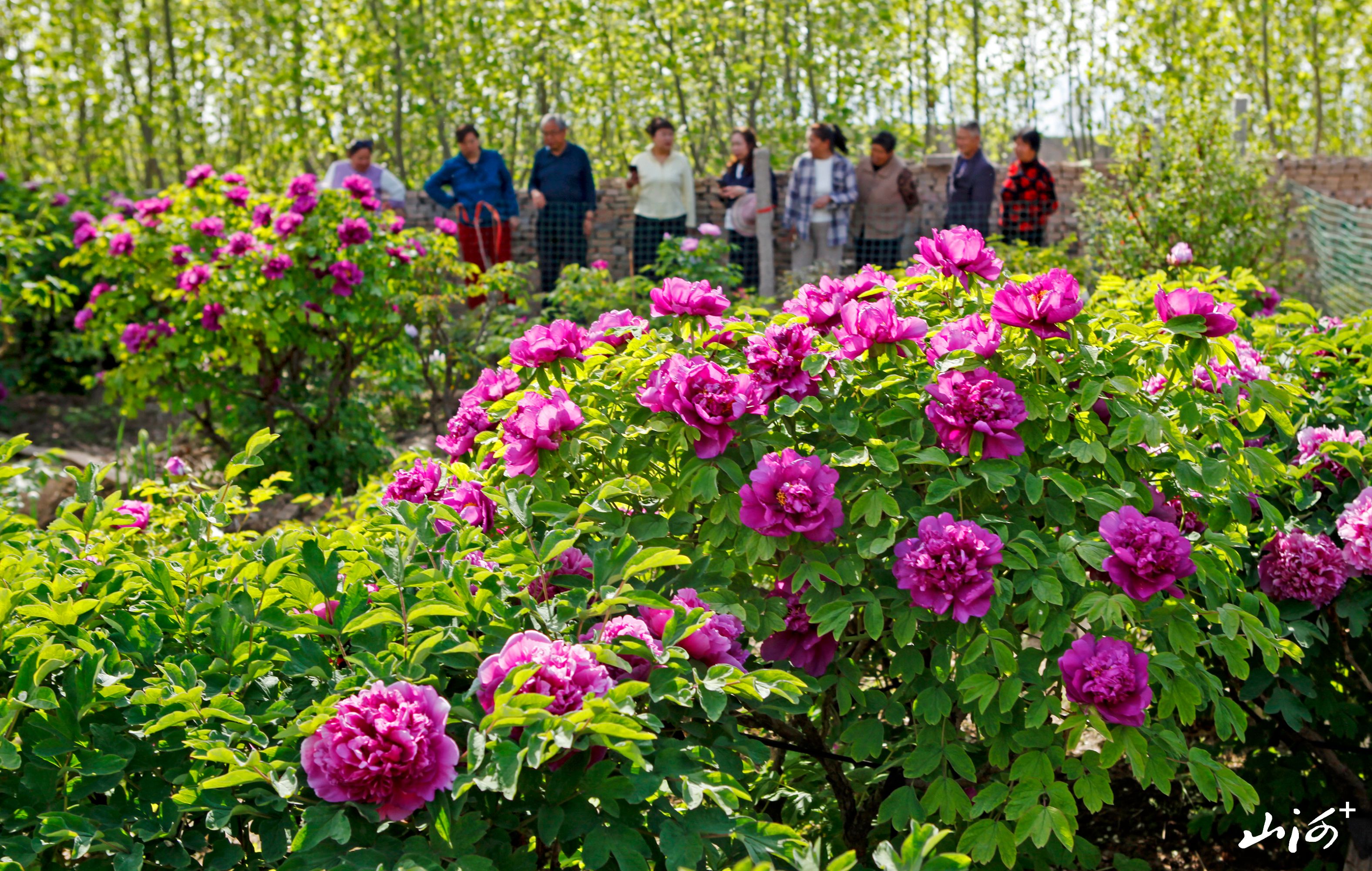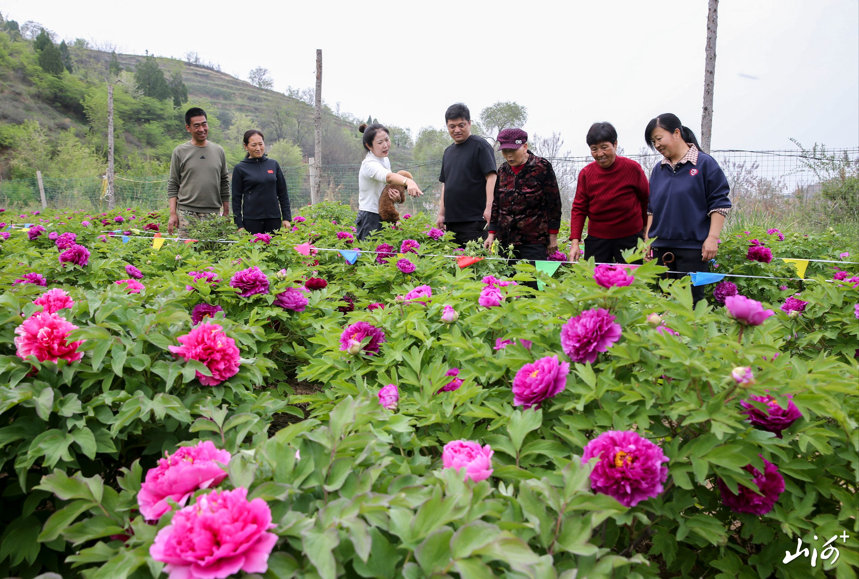 稷山县太阳乡王顺才家的牡丹园百余种牡丹竞相绽放,吸引众多游客前来赏花打卡。