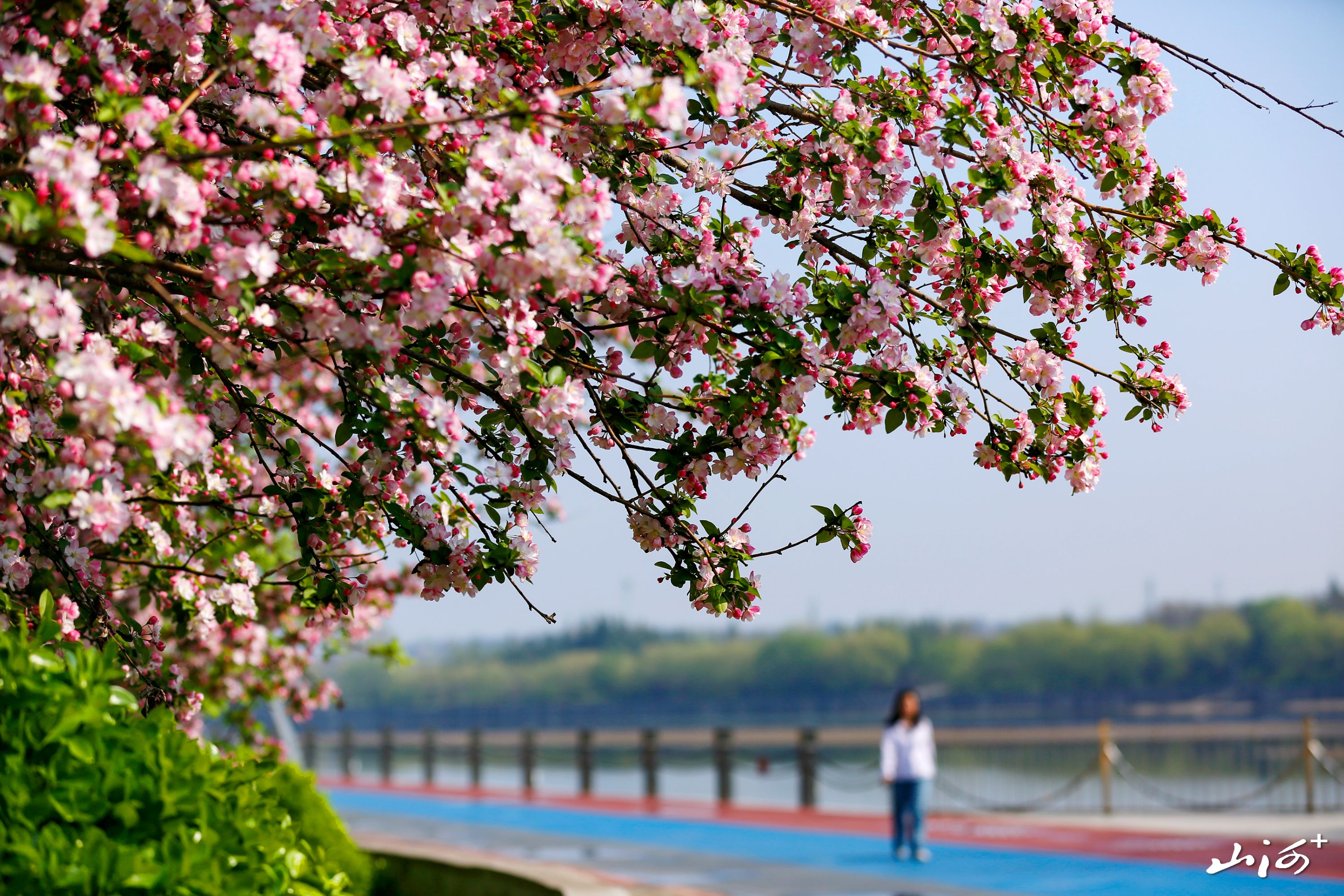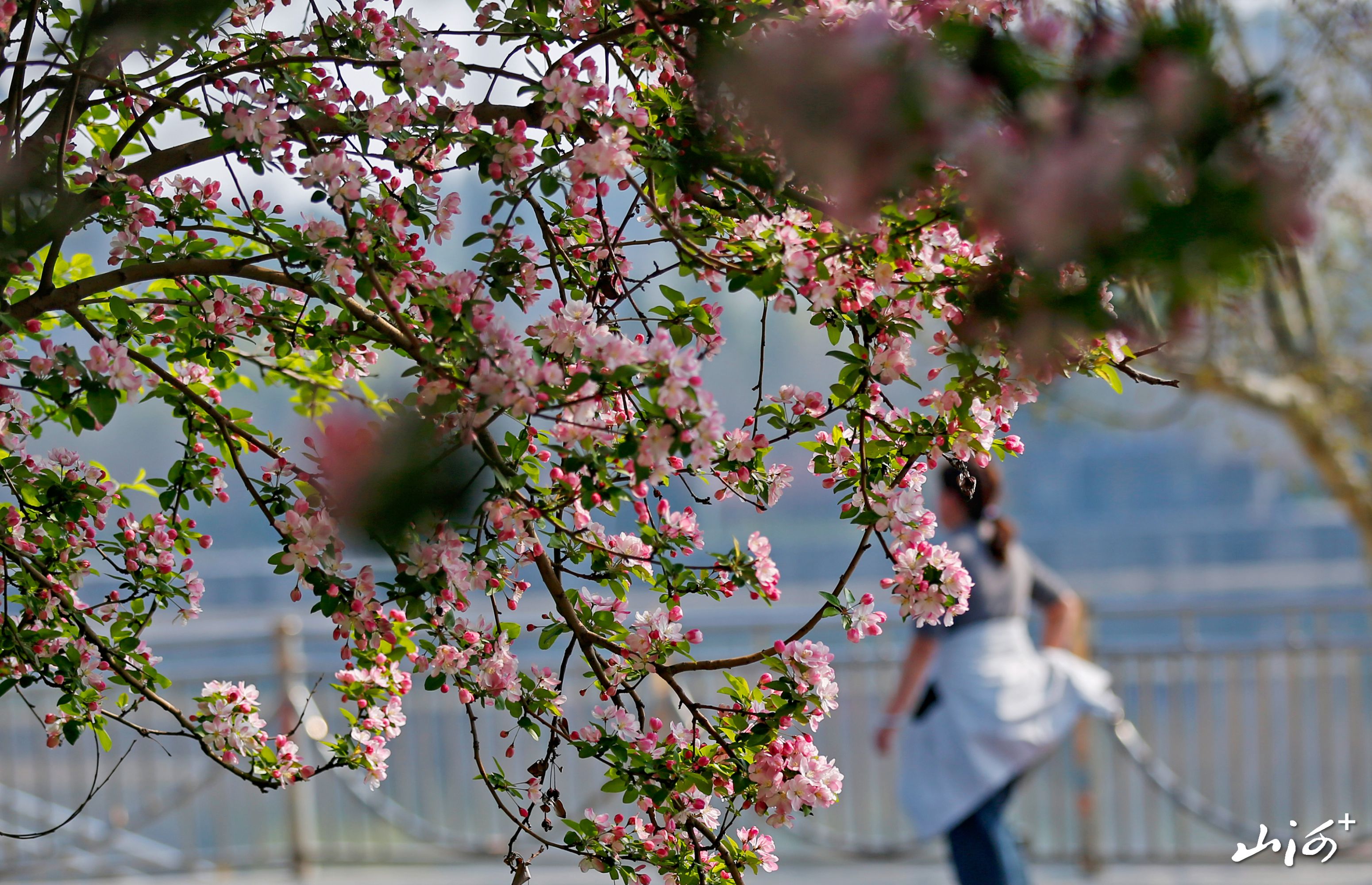 襄汾县滨河公园内海棠花迎来盛花期,呈现一幅绚丽多彩的大自然画卷。