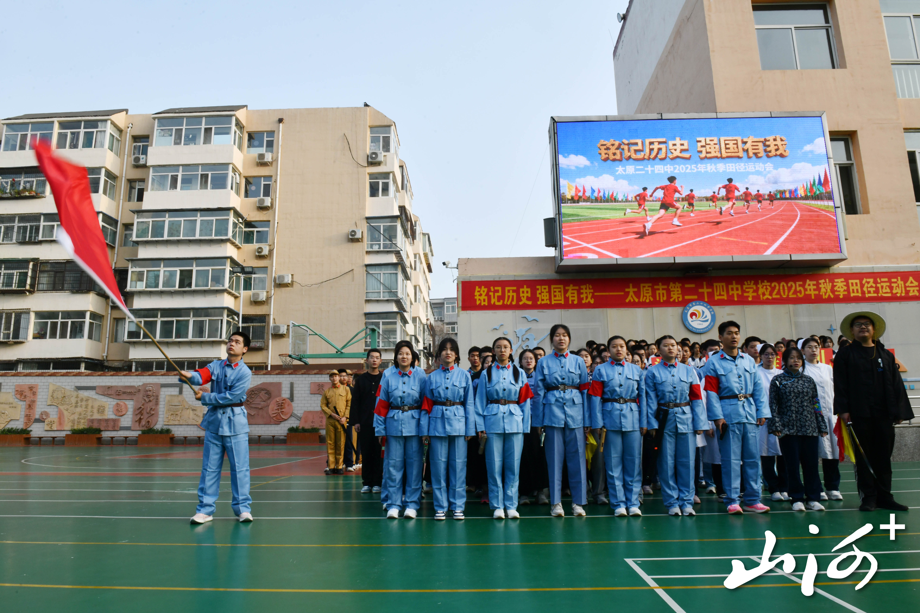 山西晚报·山河+讯 9月30日,太原市第二十四中学校以“铭记历史,强国有我”为主题,成功举办秋季运动会。开幕式别开生面,以“夜袭阳明堡”“平型关大捷”“百团大战”等山西本土抗战故事为蓝本,学生们通过精彩的情景表演,生动再现了左权英雄与吕梁英雄儿女的感人事迹,将运动会开幕式打造成一堂生动的“行走的思政课”。