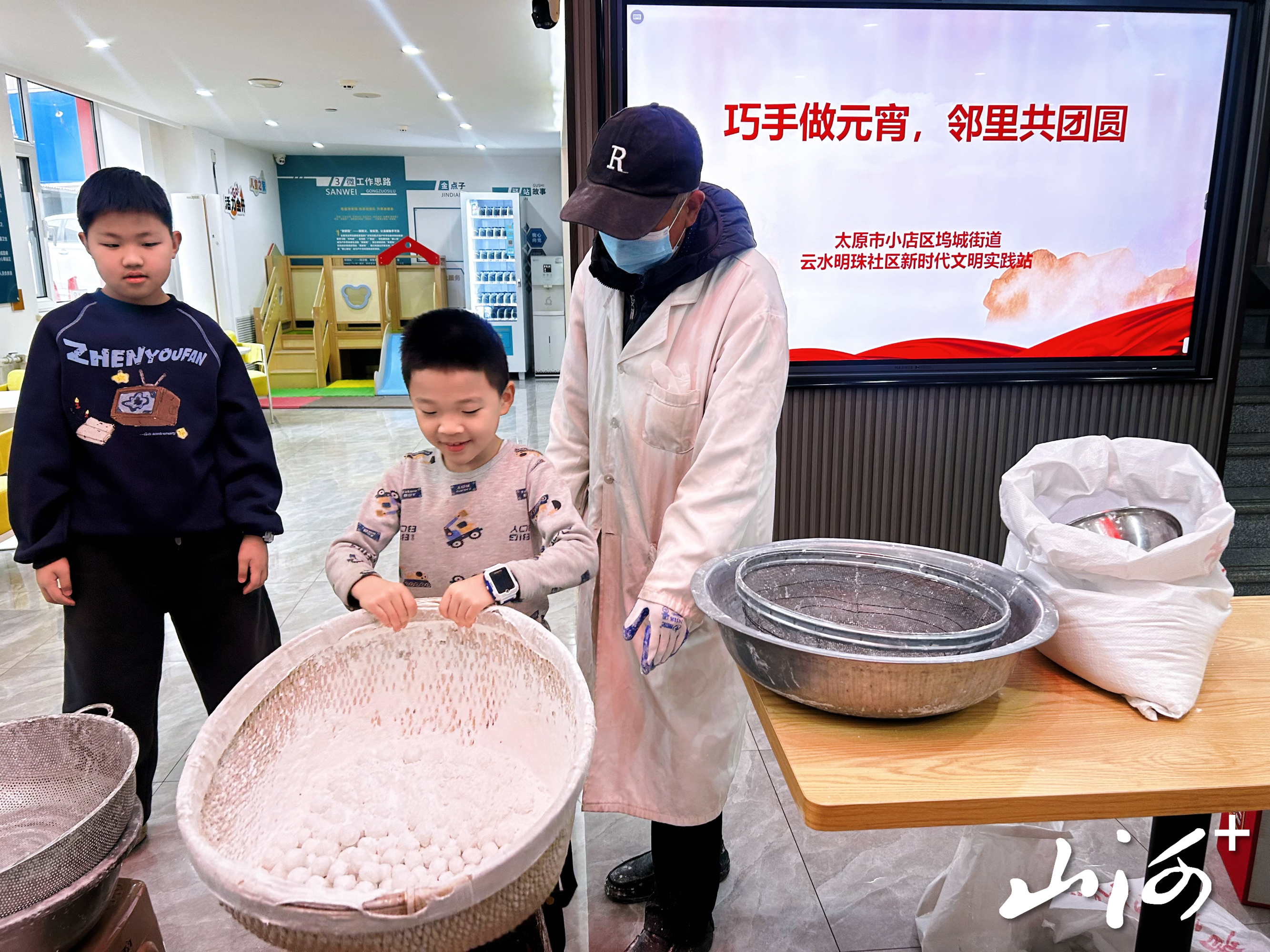 本次活动邀请了有着三十余年滚元宵经验的张师傅来活动现场教学。活动伊始,张师傅用朴实生动的语言,详细讲解了滚元宵的传统习俗和制作技巧,讲解结束后,大家兴致勃勃地挽起衣袖,动手体验传统技艺。张老师傅耐心细致,手把手教大家调整节奏、找准重心。陈姐跟着老师傅的步骤操作,不一会儿就滚出几个圆润的元宵,她笑着说:“平时只在电视上见过滚元宵,今天亲手做出来了,体验感十足,特别有意义!”小朋友们更是兴奋不已,小手沾满糯米粉,专注地滚动着手中的“小团子”,举着自己的作品向家长炫耀,现场欢声笑语不断。滚元宵环节结束后,社区工作人员将大家制作的元宵煮熟,分发给现场的居民和户外劳动者品尝,软糯香甜的元宵入口,暖意瞬间直达心底。