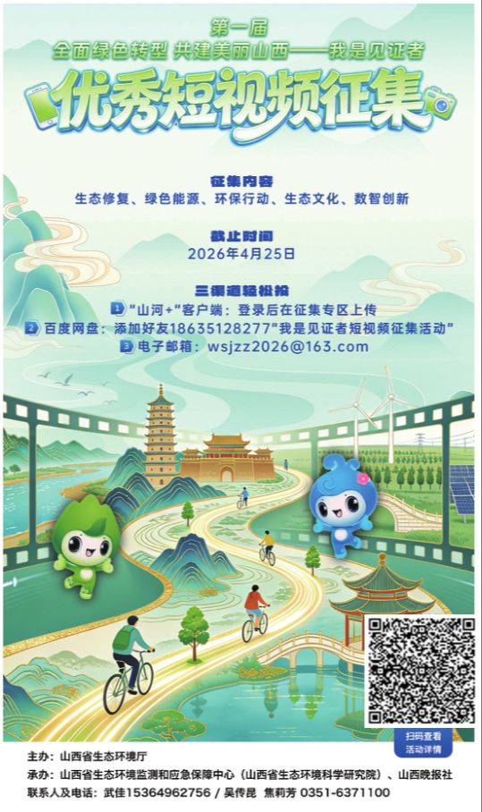 4月1日,由山西省生态环境厅主办,山西省生态环境监测和应急保障中心(山西省生态环境科学研究院)、山西晚报社承办的第一届“全面绿色转型共建美丽山西——我是见证者”优秀短视频作品征集活动,正式启动!