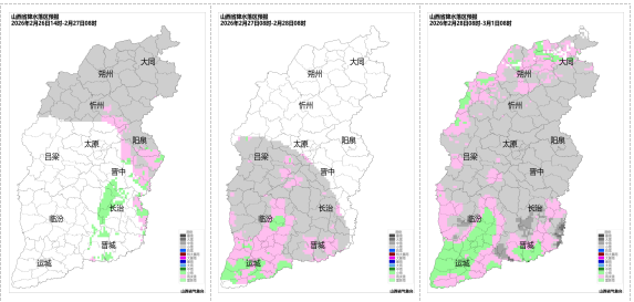 全省多云为主;大同、朔州、忻州、阳泉等地部分地区有雨夹雪或小雪;晋中、长治、晋城等地部分地区有小雨或雨夹雪。