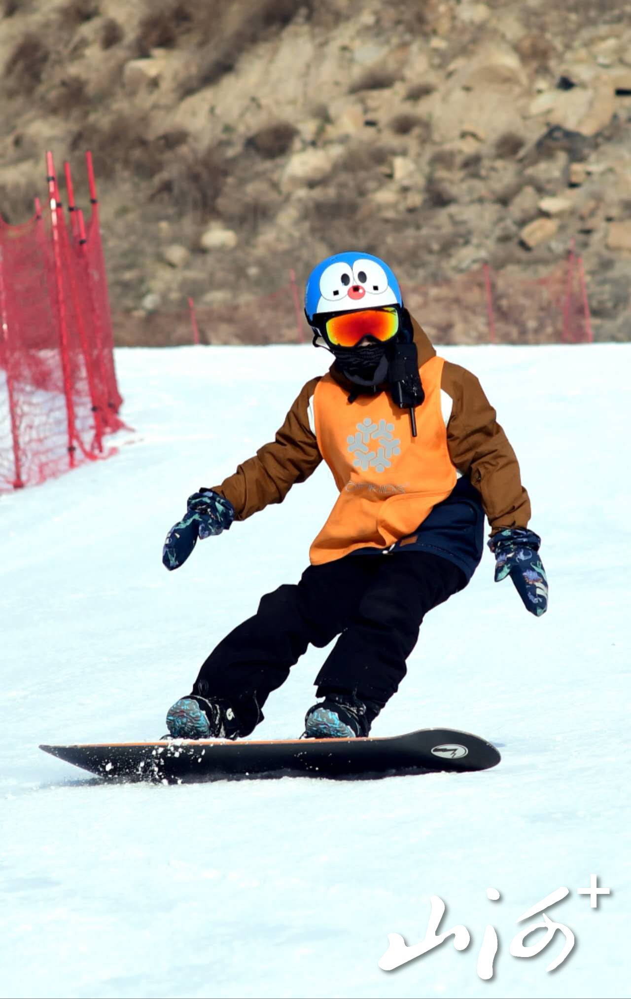 2022年1月,北京冬奥会开幕前一周,山西晚报·山河+记者在榆次乌金山滑雪场见到了一个8岁男孩。他头戴天蓝色哆啦A梦头盔,从雪道上飞驰而下,雪末飞溅。他叫刘浩初,昵称“小Man”,当时已经有4年雪龄。