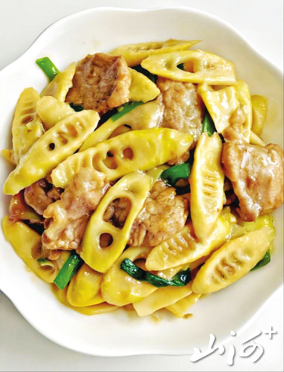 准备春笋1根、蒜末少许、盐和香油适量。春笋剥去外壳,切薄片后放入沸水中焯水2分钟,去除涩味;锅中放少许食用油,爆香蒜末,下入肉片和笋片大火快炒2分钟,加适量盐调味,滴几滴香油提香即可。