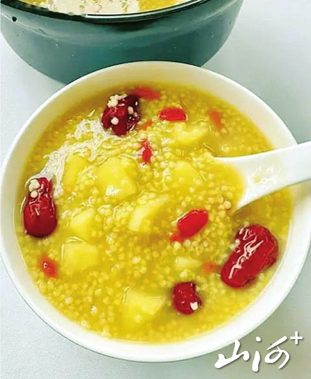 准备小米50克、鲜百合1颗、莲子10粒,红枣、枸杞子各适量,少量冰糖。小米淘洗干净,莲子提前泡软,与红枣一同放入锅中加水煮至小米开花;鲜百合掰成小瓣洗净,放入粥中再煮5分钟,加少许冰糖调味即可。