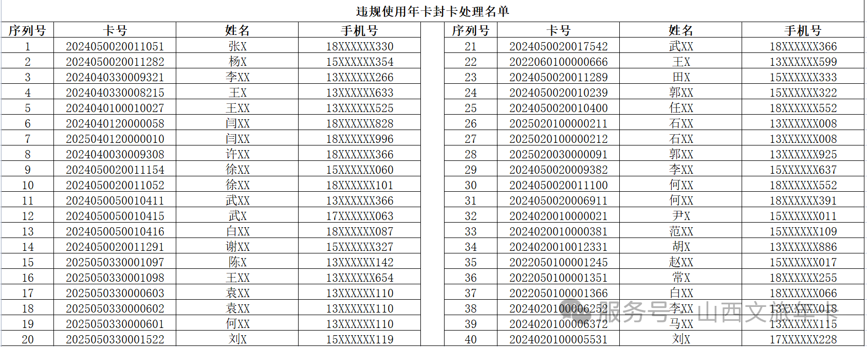 为切实保障广大持卡用户与合作景区合法权益,维护文旅消费市场秩序,作为山西文旅年卡官方发行方,山西文旅集团云游山西股份有限公司持续开展违规用卡专项整治,重点严厉打击非本人持卡、违规倒卖权益、盗用年卡权益等各类 “黄牛” 乱象。平台依托多重技术手段筛查管控异常用卡行为,对存在违规操作的年卡一律予以封卡处理。截至目前,已累计封禁违规 “黄牛卡” 超 100 张,并公示部分违规名单。