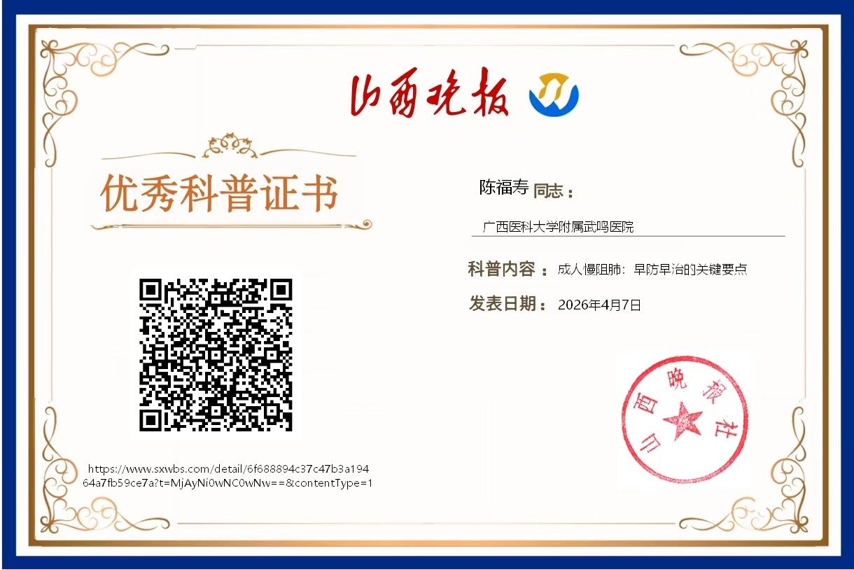 慢性阻塞性肺疾病(慢阻肺)是一种以气道不可逆阻塞、肺功能进行性下降为特征的慢性呼吸系统疾病,主要包含慢性支气管炎和肺气肿,40岁以上人群高发,吸烟是首要危险因素。该病早期症状隐匿,易被忽视,一旦出现明显呼吸困难,肺功能多已严重受损,且损伤不可逆。但做好早筛查、早预防、早治疗、长期管理,能有效延缓病情进展、保护肺功能、提升生活质量,这也是慢阻肺防控的核心关键。