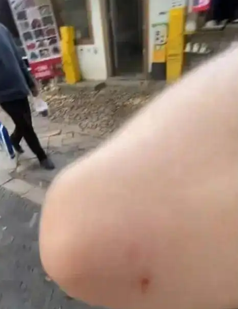 李女士称,在拉扯过程中,她被迫删除了含有对方影像的照片。对方还声称“必须消费才能在此拍照”。她认为该区域属公共空间,不应被商家私占,且驱赶方式粗暴,遂返回现场再次拍摄取证。“这次我刻意避开拍到他们,但他们仍冲出来抢我手机。”李女士说,对方抓住她不放,她挣脱逃跑时不慎摔倒,致身上多处擦伤。
