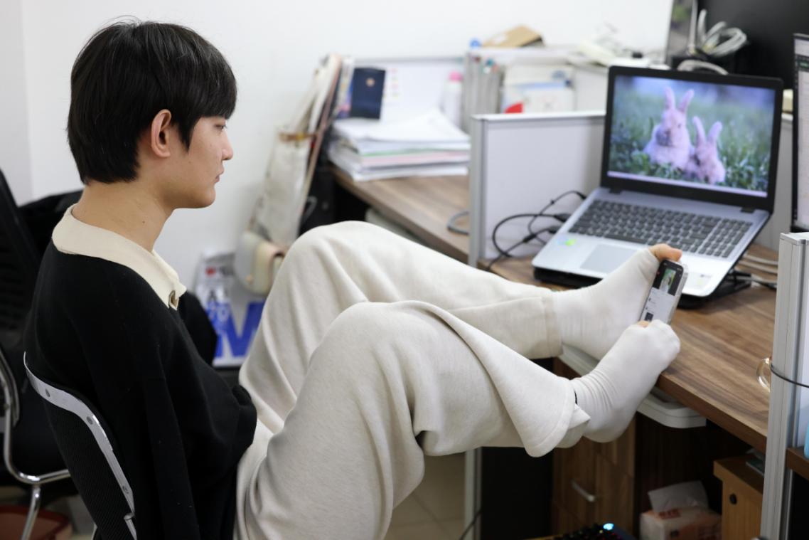 王海港也会在社交媒体上记录自己的日常:用肩膀开灯、用双脚整理床铺、嘴脚配合刷牙。除了深耕学术,他还练就了诸多本领——踢足球、滑雪、玩滑板,也喜欢唱歌、吃火锅、打电脑游戏。
