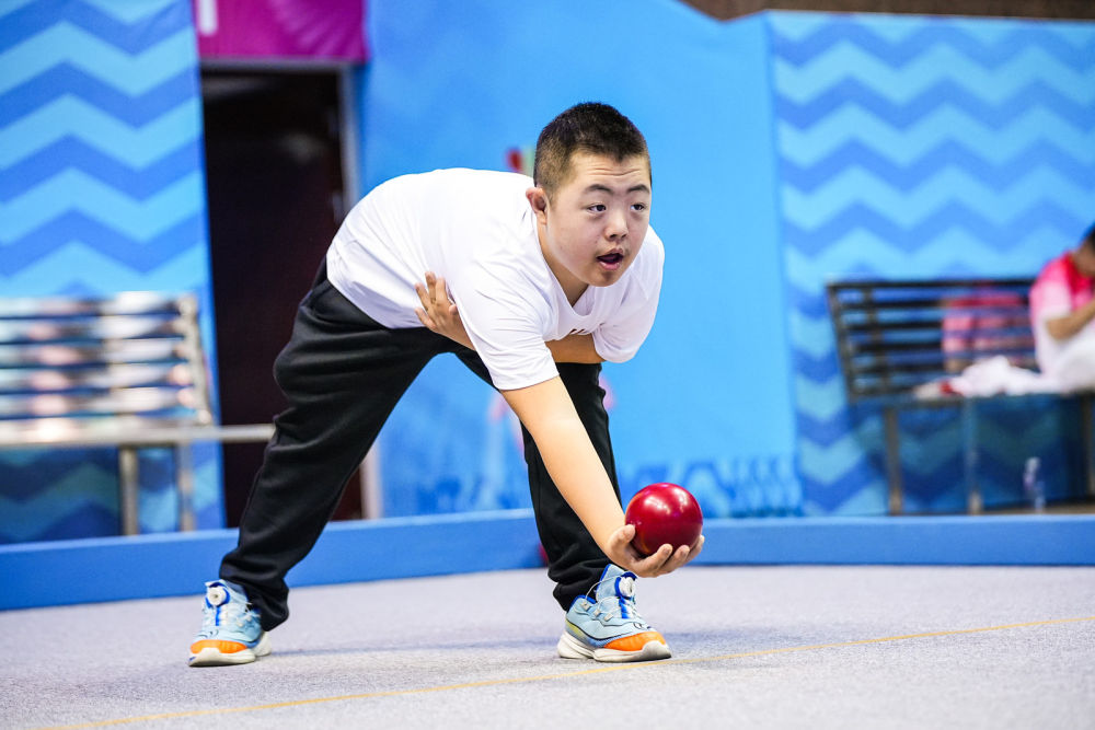 图为滚球项目队员在全国第十二届残疾人运动会暨第九届特殊奥林匹克运动会上