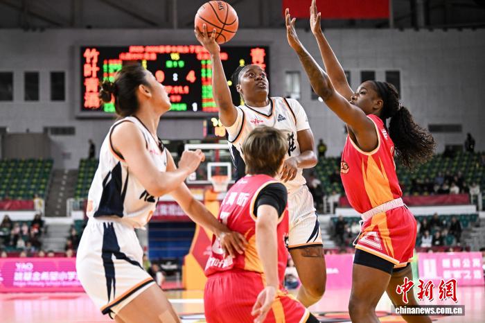 2月1日,石家庄队球员戴维斯(白衣)在比赛中上篮。当日,在太原举行的2025-2026赛季中国女子篮球联赛(WCBA)常规赛第22轮比赛中,山西竹叶青酒队主场以97比94战胜石家庄英励队,以18胜4负的战绩获得常规赛冠军。中新社记者 韦亮 摄