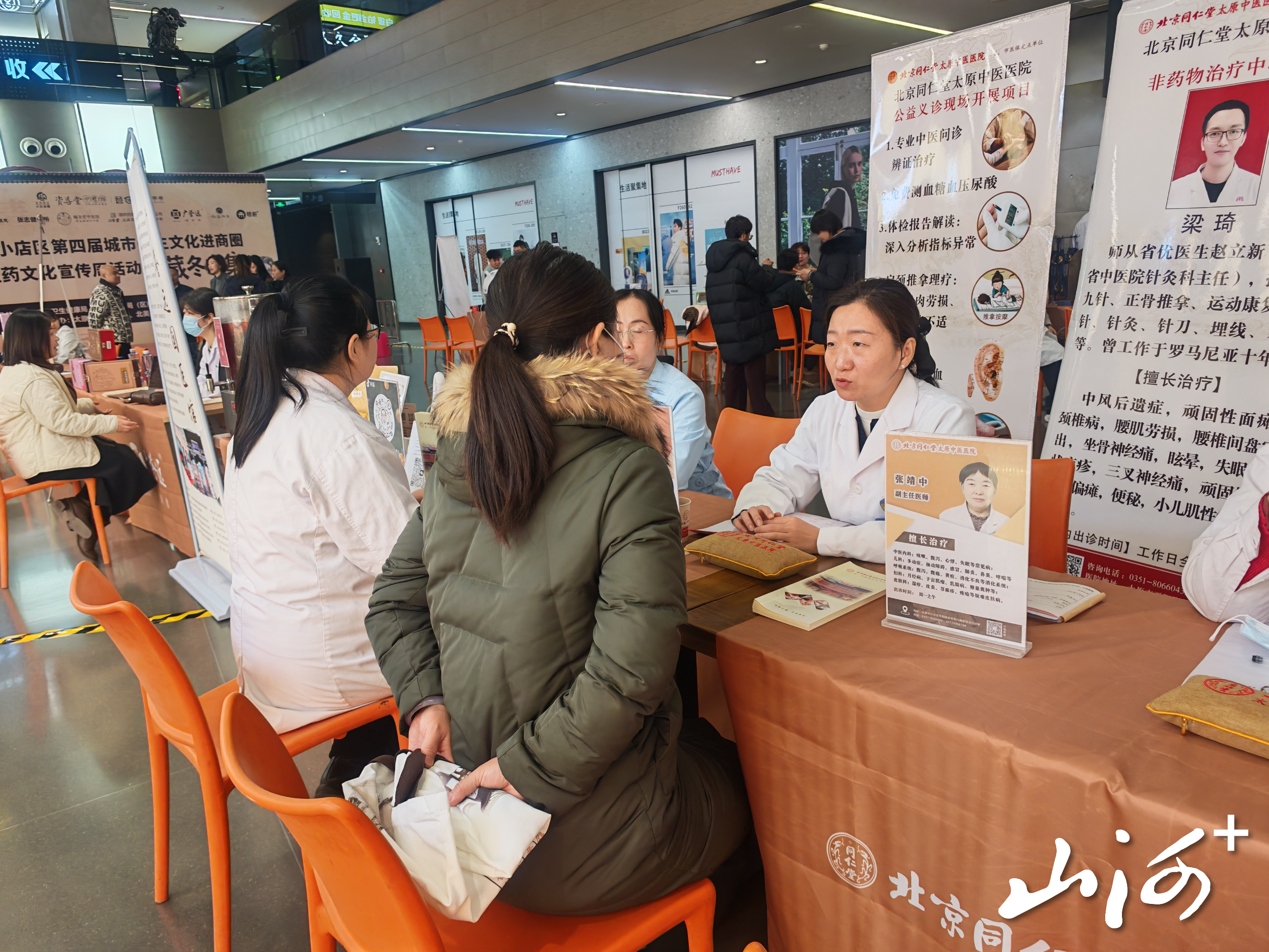 中医诊疗服务区。汇聚了区域内优质的中医医疗资源,如北京同仁堂太原中医医院、张志健诊所等机构的资深医师坐镇。他们为市民提供免费的中医问诊、把脉、体质辨识等核心服务,并根据需要提供推拿、针灸等非药物疗法体验,将专业的诊疗服务从医院延伸至商圈,实现了健康服务的“零距离”触达。