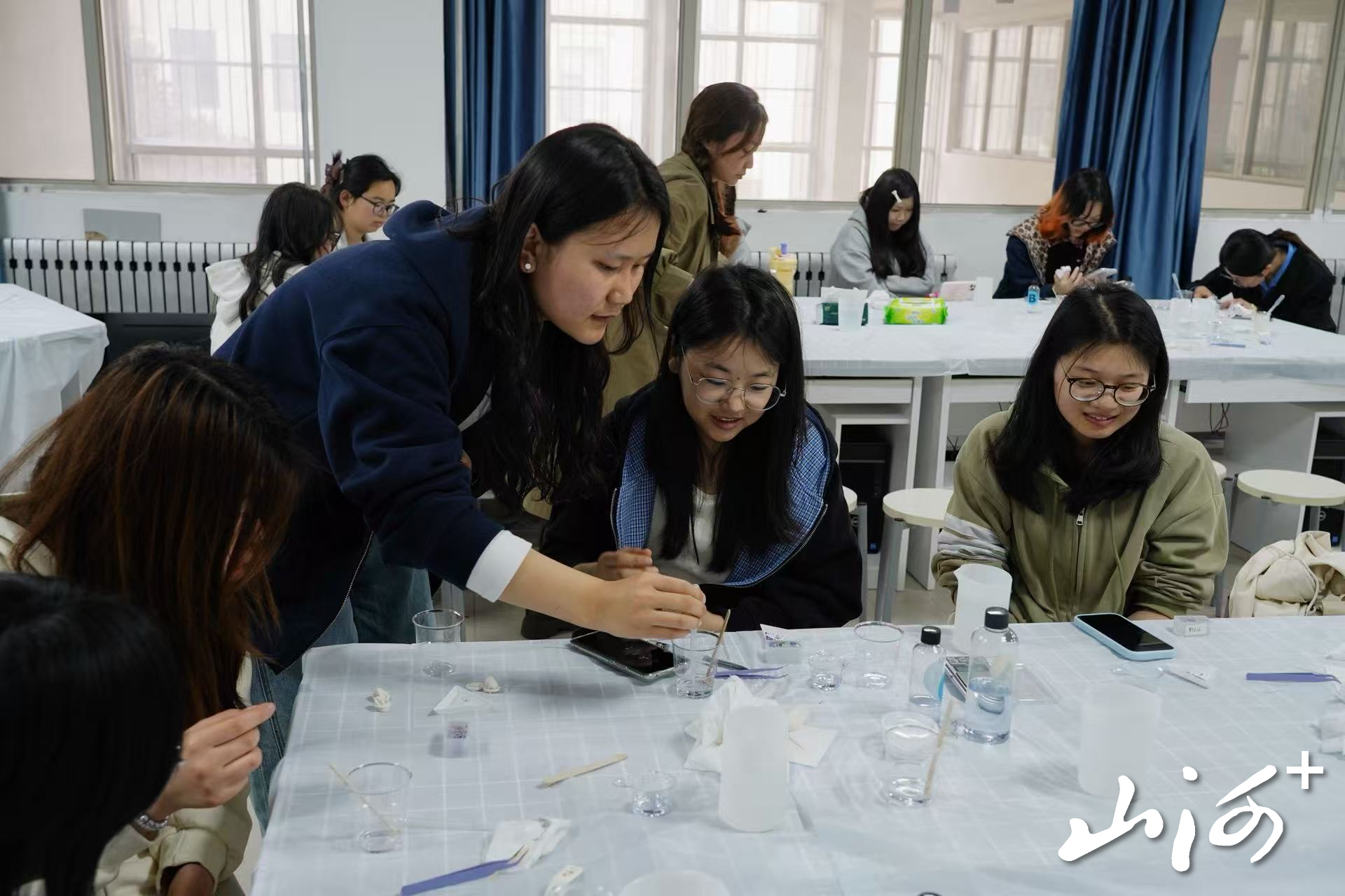 同学杨炜烨则用“惊喜又治愈”来形容这次体验。第一次尝试滴胶制作的她坦言,从前总觉得手作很难,这次却发现只要有耐心,自己也能做出精致的小物件。“在专注摆放干花、慢慢滴入滴胶的过程中,整个人会变得格外平静。”她笑着说,自己因此多了一个DIY的喜好。