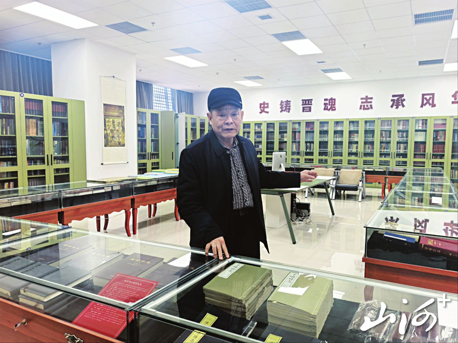 一旁的王兆元,正是临汾市三晋史志博物馆的创办者。这座位于临汾市尧都区文化艺术中心的博物馆,是全国首家非国有方志博物馆,1000平方米的场馆里,藏着41000余册(件)史志资料,从明代洪武年间的《平阳志》孤本,到抗战烈士名录、清代宗谱,都在这里安了家。