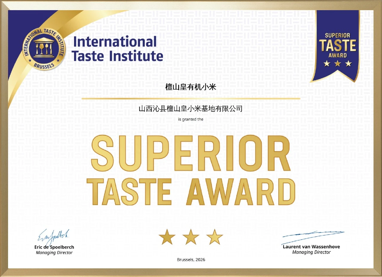 山西晚报·山河+讯 近日,国际风味评鉴所(International Taste Institute,简称ITI)公布2026年度“国际美味大奖”(Superior Taste Award)评选结果。我省檀山皇有机小米以90分以上高分斩获最高等级——三星奖章,实现从2024年二星认证到三星认证的品质跃升,彰显中国有机农产品的国际竞争力。