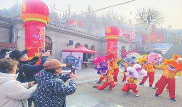 阳泉桃林沟村景区民俗表演吸引游客驻足观看。山西经济日报记者王昕摄