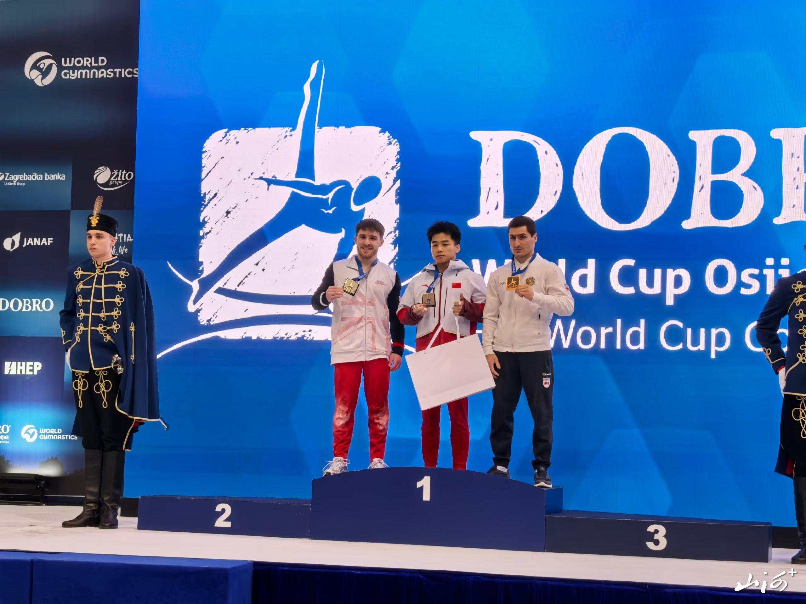 山西晚报·山河+讯   4月9日至12日,2026年国际体联体操世界杯奥西耶克站在克罗地亚举行。中国选手、山西运动员刘恒宇在男子吊环项目中表现出色,勇夺冠军,摘得他个人职业生涯的首枚体操世界杯金牌。