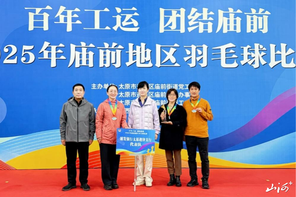 11月6日至7日,2025年“百年工运 团结庙前”羽毛球混合团体比赛顺利举办。浦发银行太原分行选派8名精英队员组成代表队参赛,队员们以球会友、奋勇争先,凭借精湛球技与默契协作,最终在机关企事业组的激烈角逐中脱颖而出,成功斩获团体冠军,展现了浦发人昂扬向上的精神风貌。