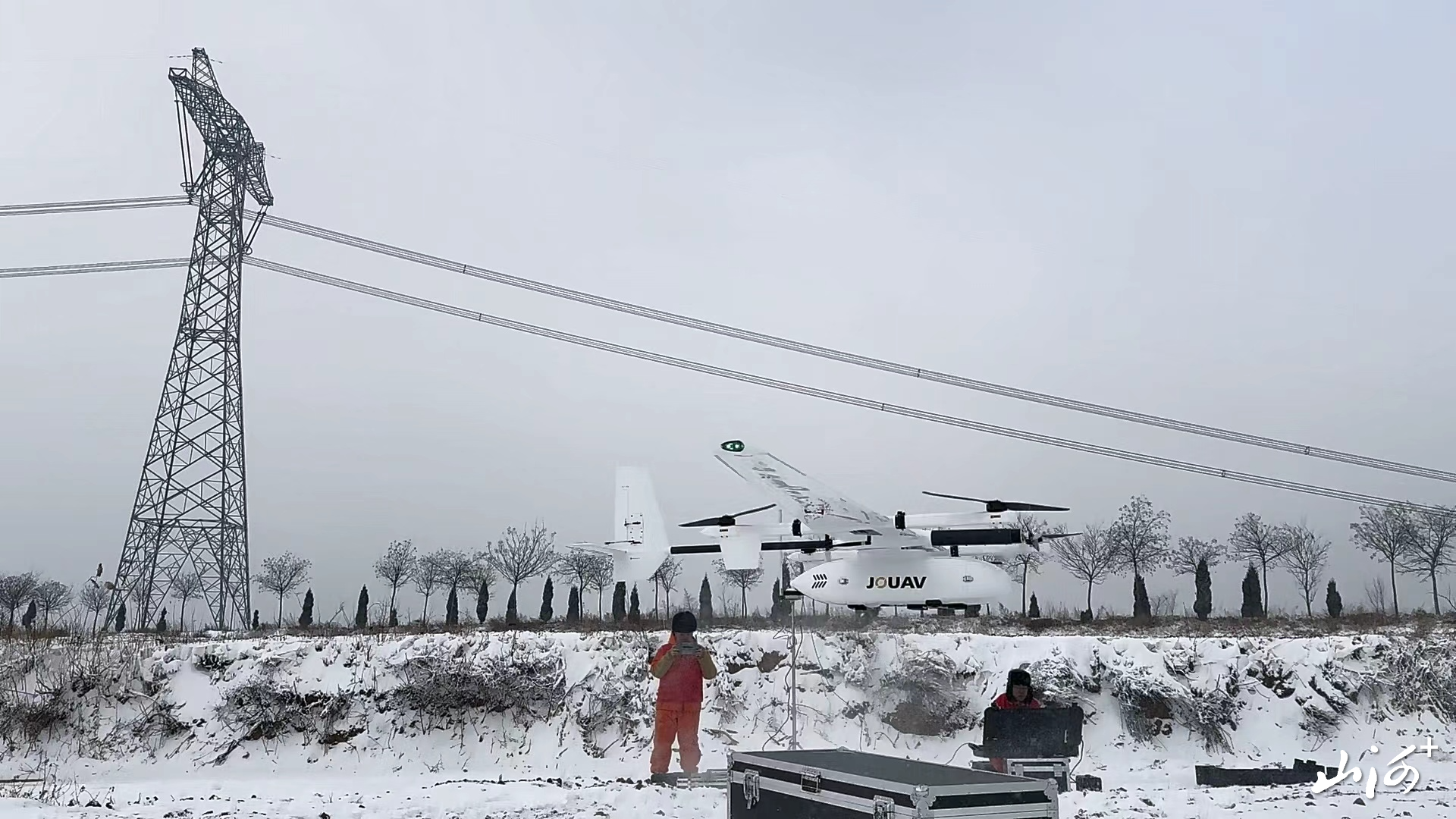 山西晚报·山河+讯 岁末年初,受寒潮天气影响,山西运城迎来降雪,±800千伏灵绍、陕武两条特高压线路存在覆冰风险。为筑牢节日供电防线,国网山西超高压输电公司党委高度重视,立即派出无人机巡检中心组建的3人专项工作组,携带运载无人机、除冰机器人及固定翼无人机等高精尖装备赶赴作业现场,同步开展输电线路应急除冰作业与雪后固定翼无人机通道航巡工作。