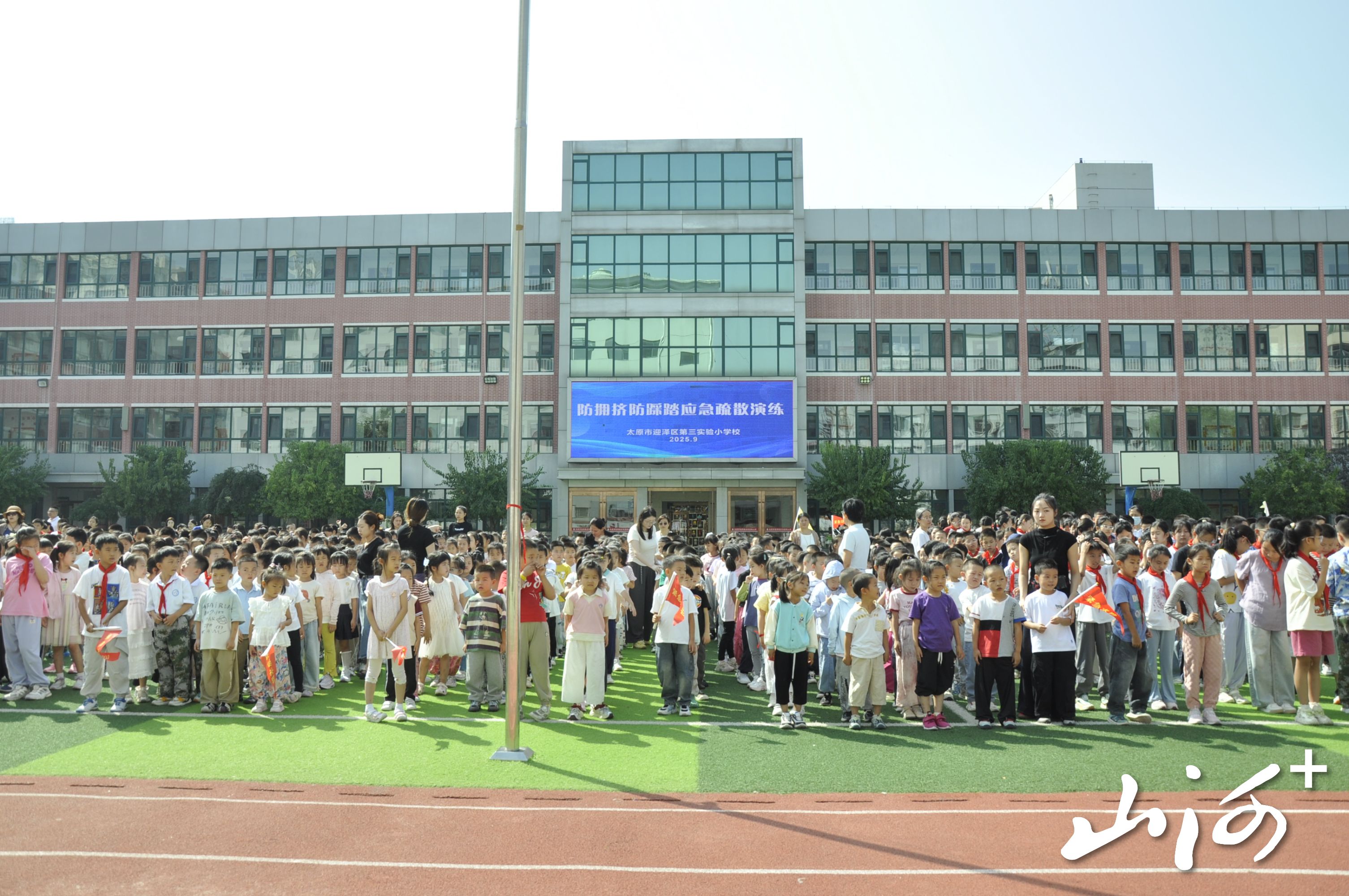 山西晚报·山河+讯 9月9日,太原市迎泽区第三实验小学以“安全第一,预防为主”为原则,组织全校师生开展防踩踏、防拥挤应急疏散演练,旨在强化师生安全意识,提升应对突发事件的应急处置能力。