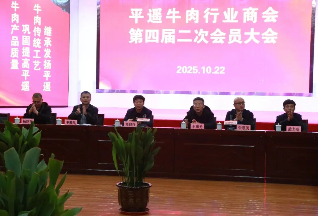 金秋十月,硕果盈枝。2025年10月24日,为期三天的平遥牛肉行业商会第四届二次会员大会及系列学习交流活动圆满收官。本次盛会汇聚行业精英与专家学者共商发展大计、共绘产业蓝图。作为会长单位及东道主,平遥牛肉集团全程举办、全力保障,共同见证行业凝心聚力的重要时刻。会长李述瑞在会上作高瞻远瞩的工作报告,为产业未来发展方向指明路径。