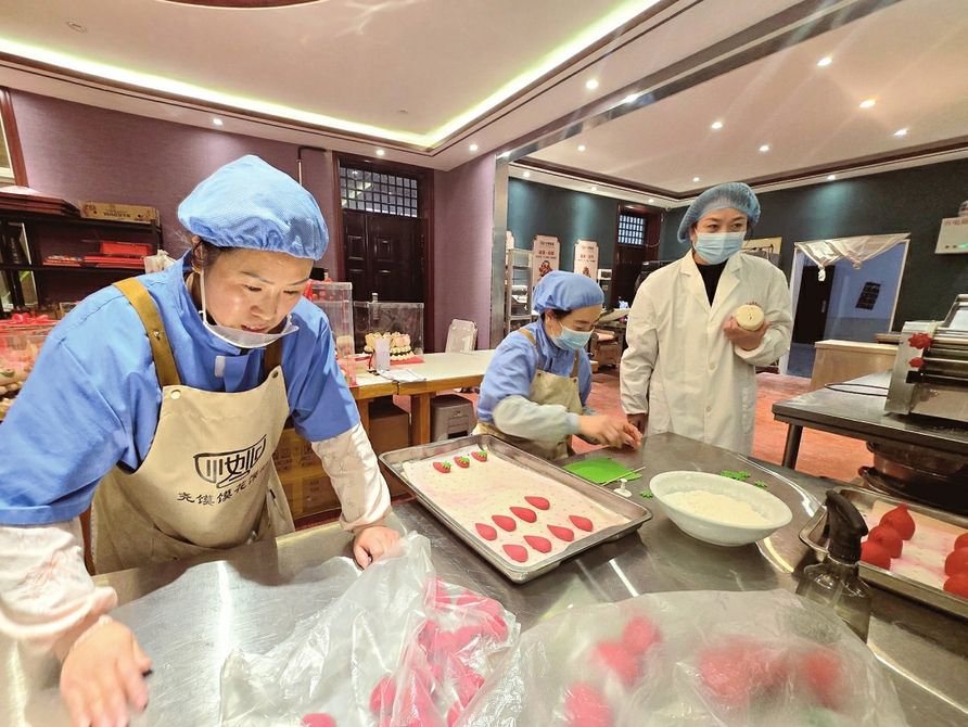 尧馍馍生产车间内,工人师傅正在赶制花馍。